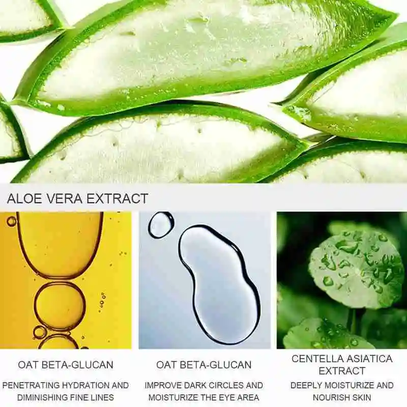 3. Осат бета-глюкан осмос и увлажнение для уменьшения тонких линий, гиалуроновая кислота улучшает темные круги и увлажняет область вокруг глаз, экстракт центеллы азиатка глубоко увлажняет, питает и питает кожу