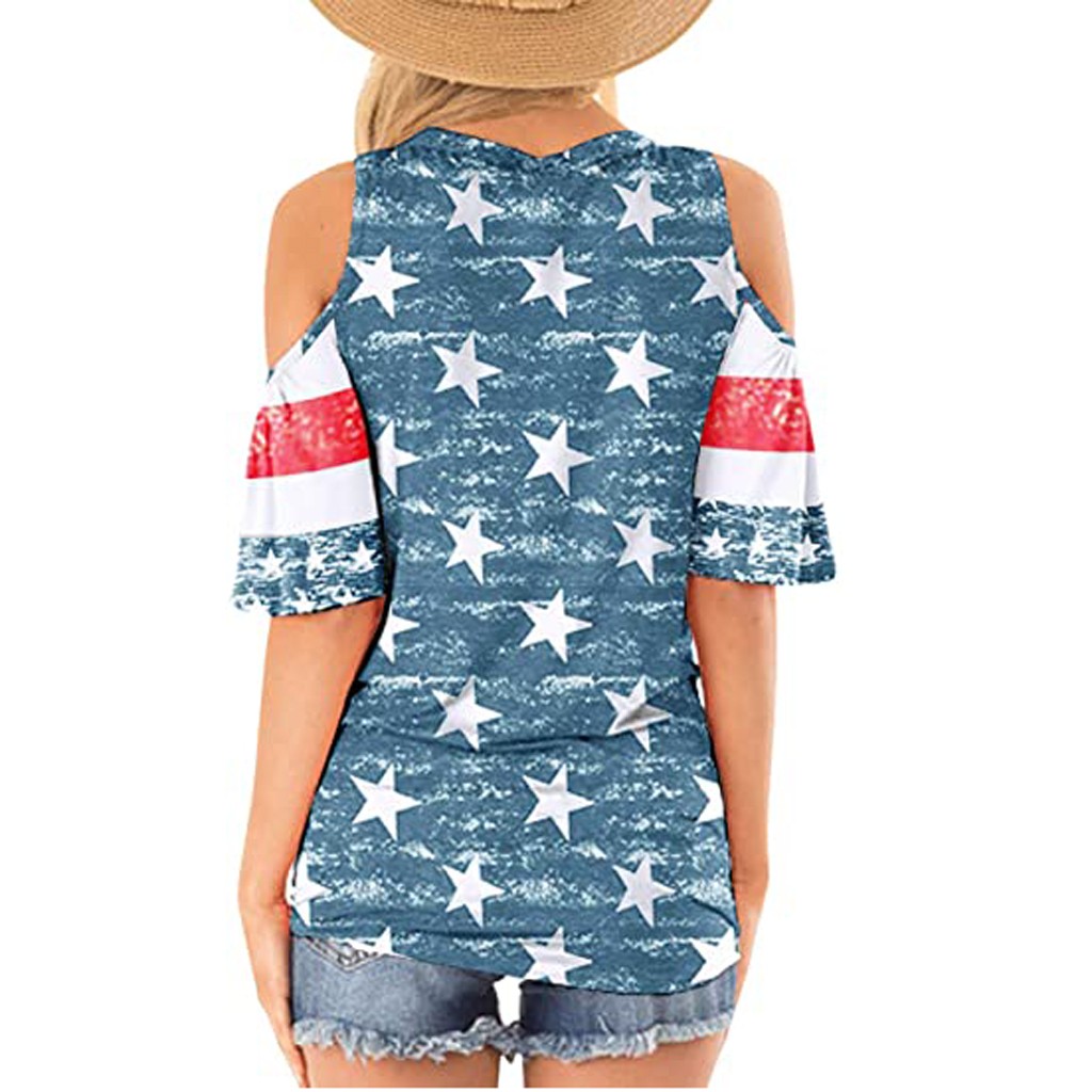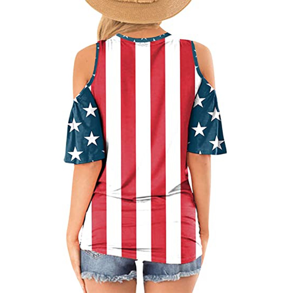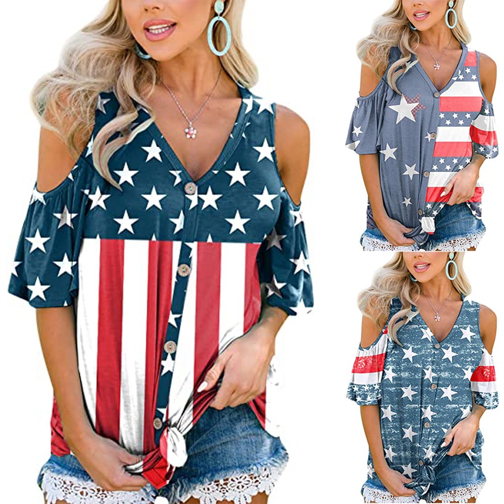 Женская патриотическая блузка в полоску с принтом звезды, американского флага, открытыми плечами и пуговицами