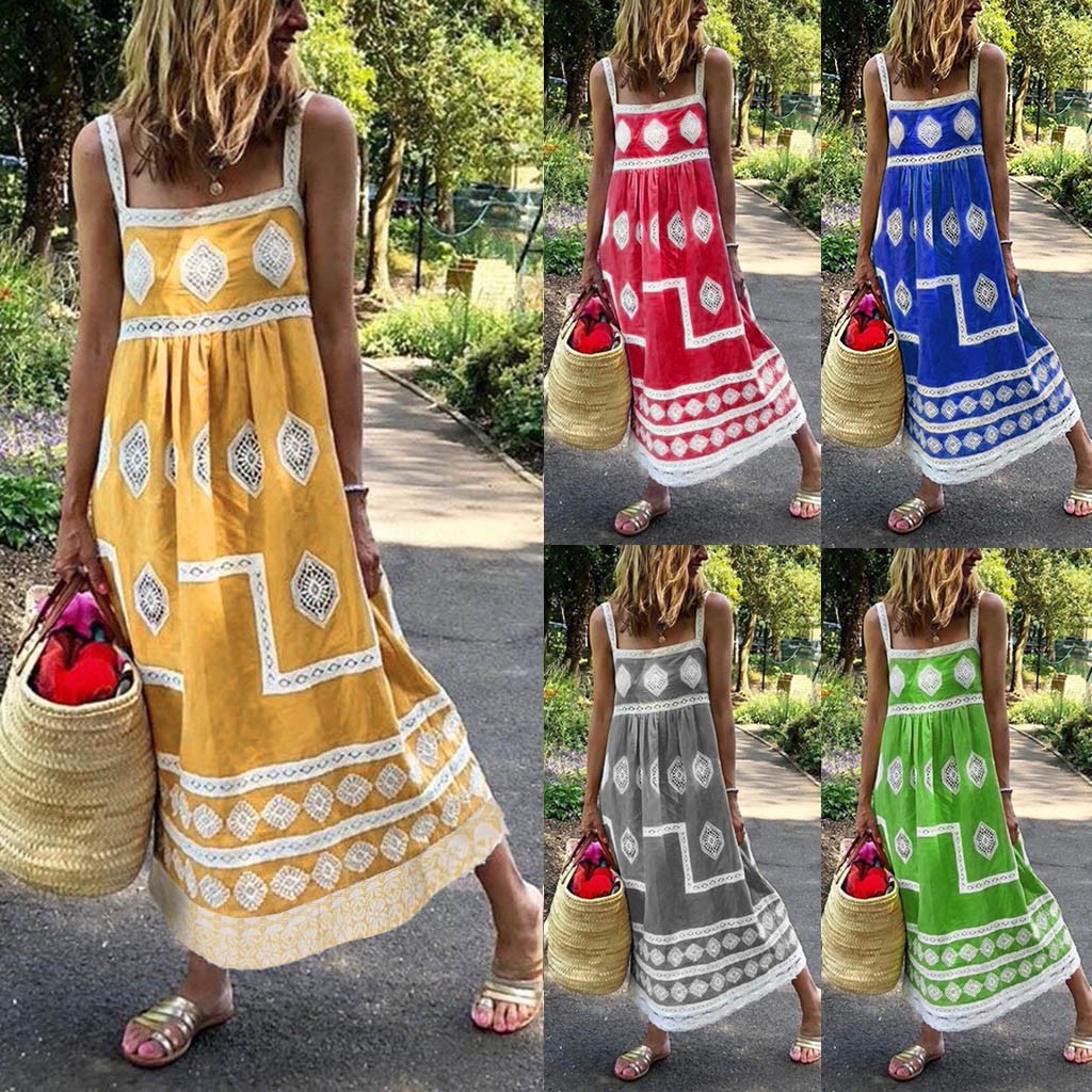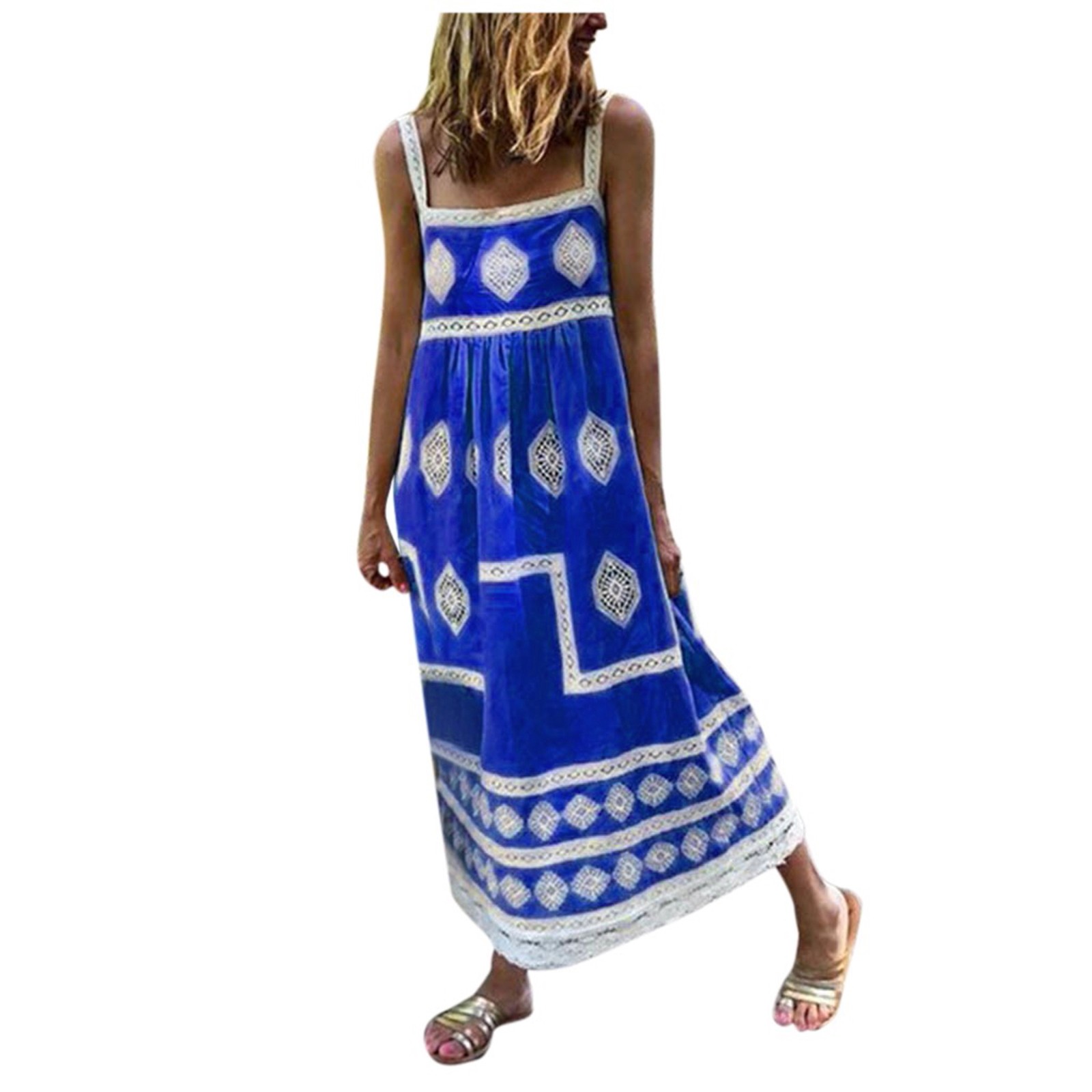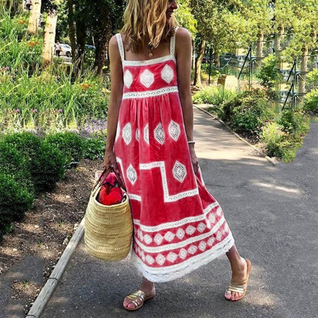 Женское летнее пляжное праздничное платье с принтом Boho, платье макси на бретелях