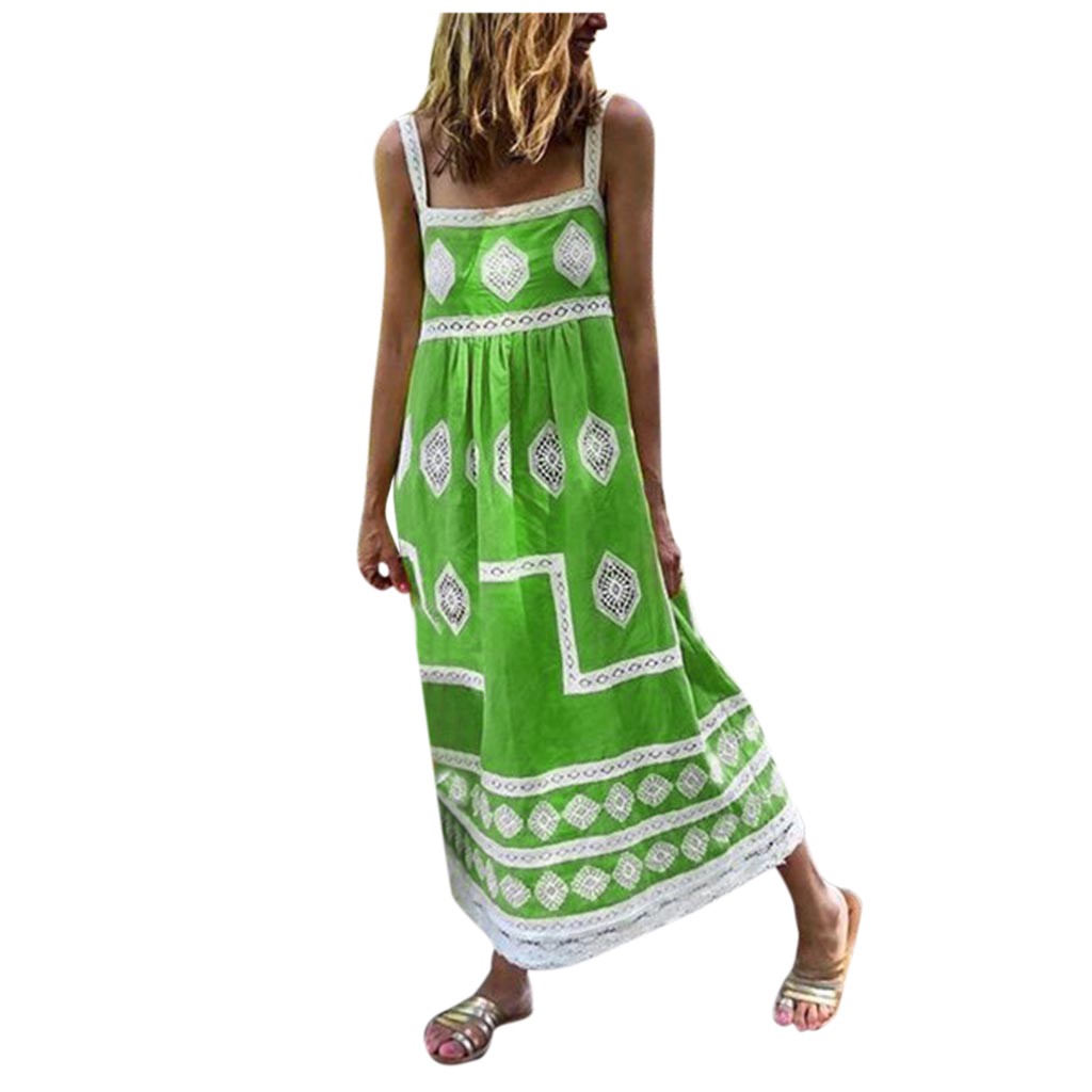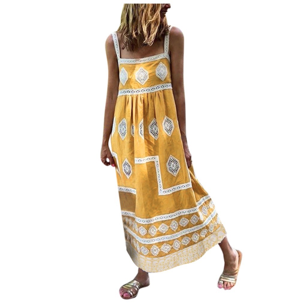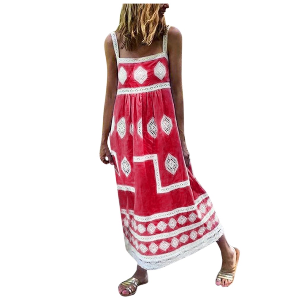 Женское летнее пляжное праздничное платье с принтом Boho, платье макси на бретелях