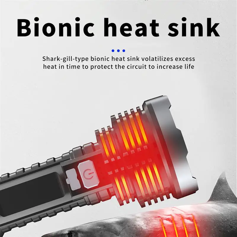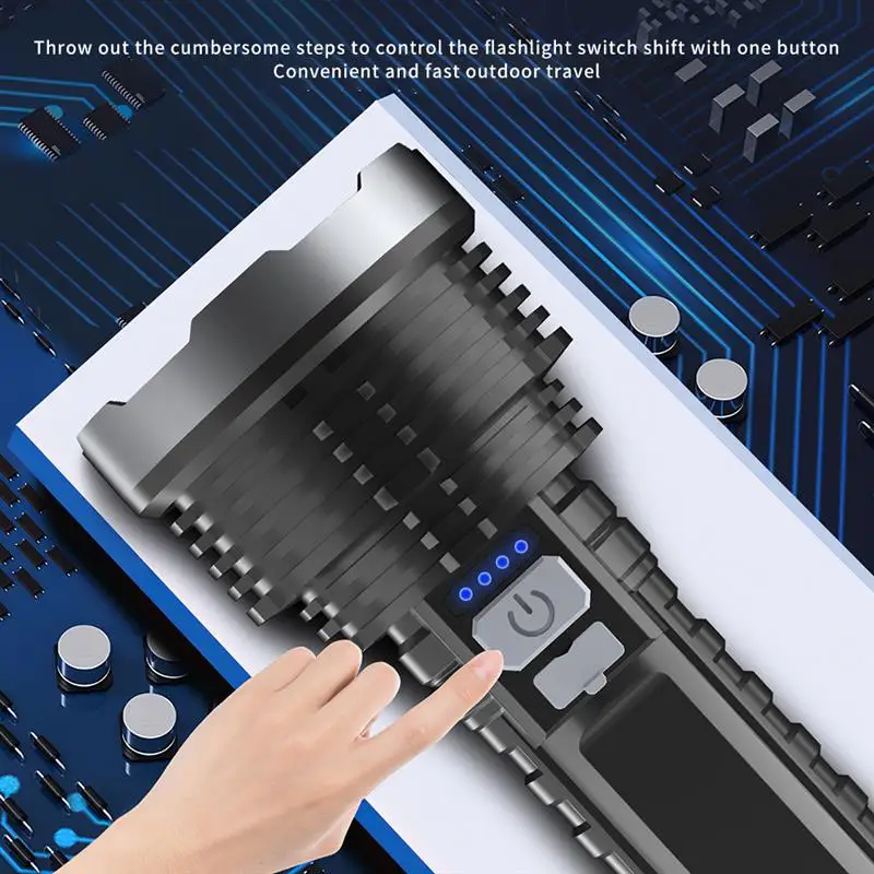 The flashlight adopts premium strong power led light bead, has superior brightness for the strong light mode, and the irradiation distance can reaches 1000 meters.