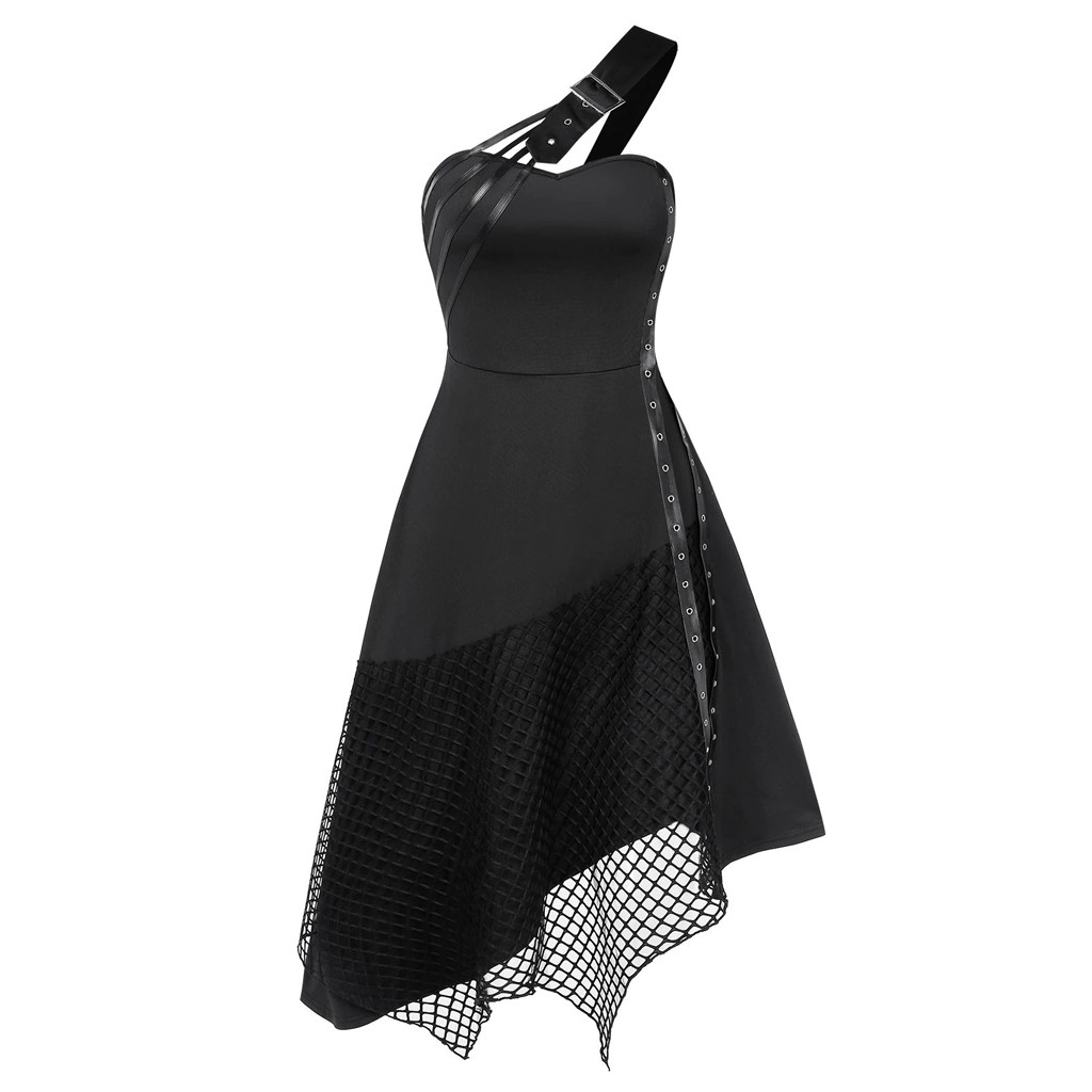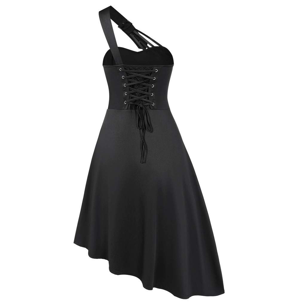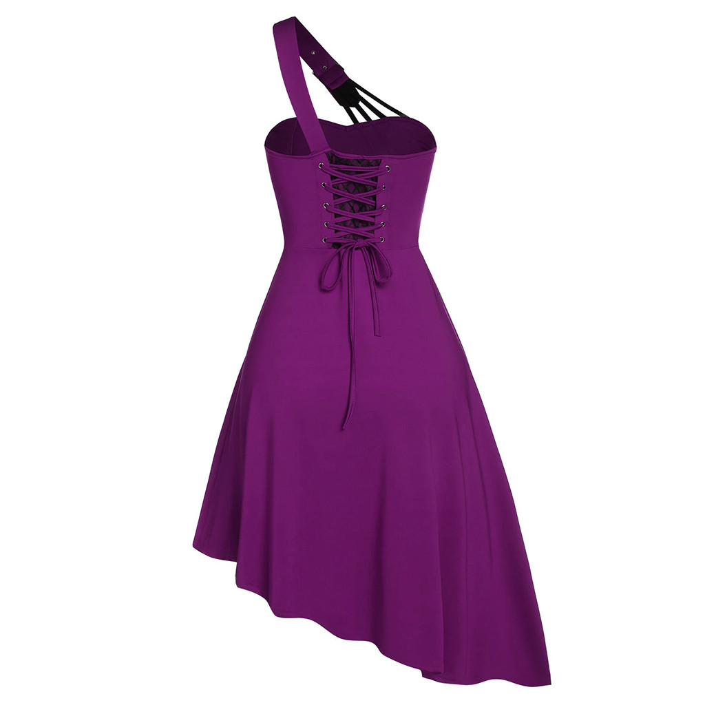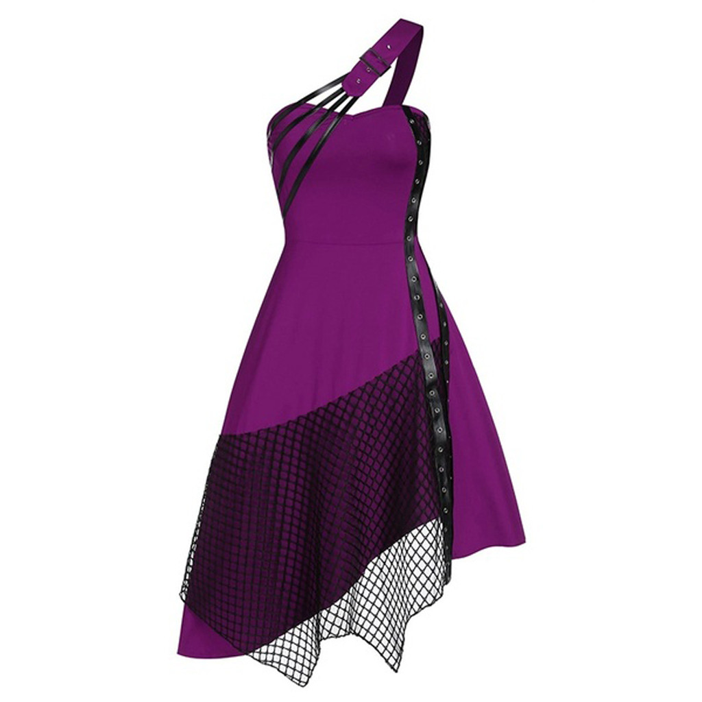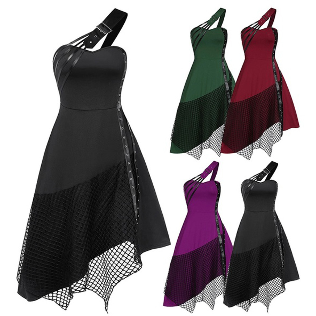 Женское платье без рукавов, готическое винтажное однотонное асимметричное платье