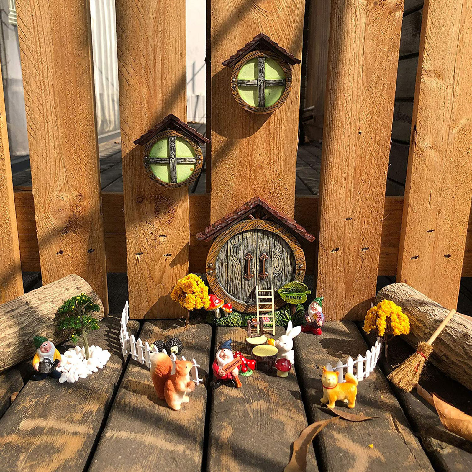 【Миниатюрные гномы Сказочный Дом 】гномы и феи ищут дом. Повесьте эти нежные двери из натурального дерева и два окна на деревья Ваш сад и приглашаем гномов и фей оставаться здесь. Грибы и Цветы у двери