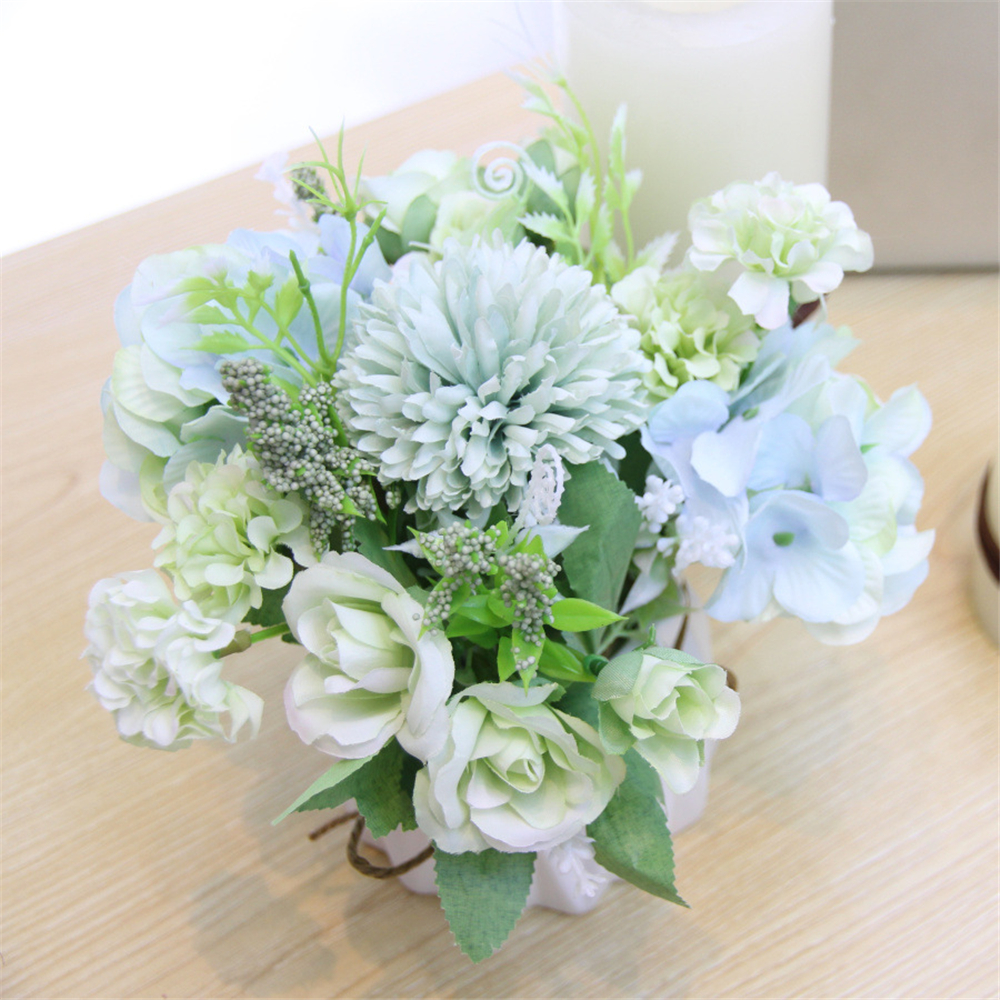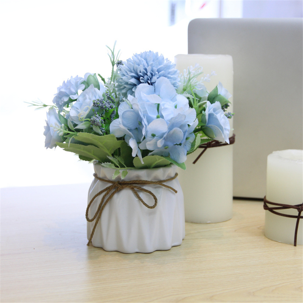 Имитация горшках Гортензия Роза железное ведро искусственный цветок, бонсай комплект Гостиная Декор для дома подарок Свадебные украшения