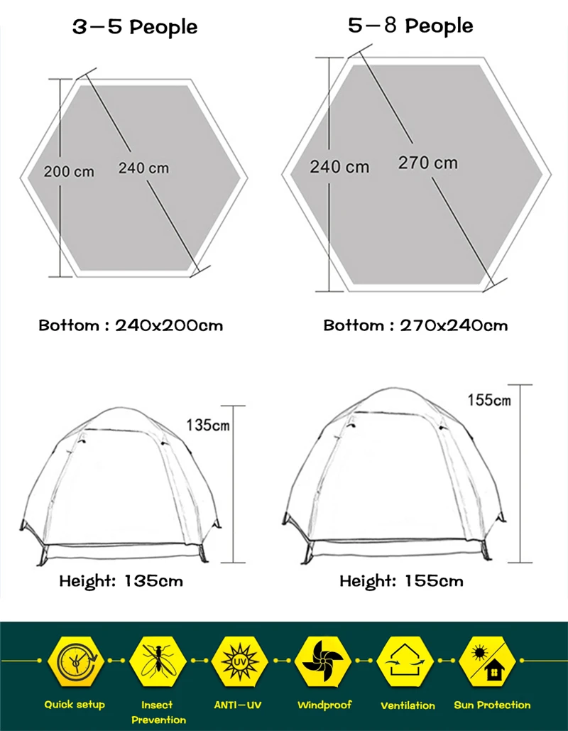 Автоматическая палатка для кемпинга 3-8 человек, Легко открывающаяся, палатка с защитой от уф, туристическая, 4 сезона, непромокаемая, семейная, туристическая, Пляжная, садовая палатка