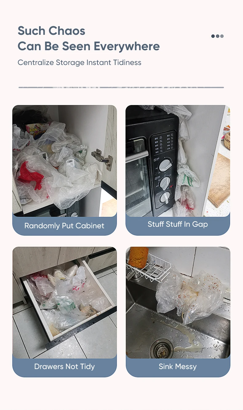【Bag Holder for Plastic Bags】the grocery bag holder is compact in design and does not take up space. Plastic trash bag dispenser is very suitable for kitchens, bathrooms, refrigerators, cabinets, offices and other places, your cabinet or desktop will be neater.