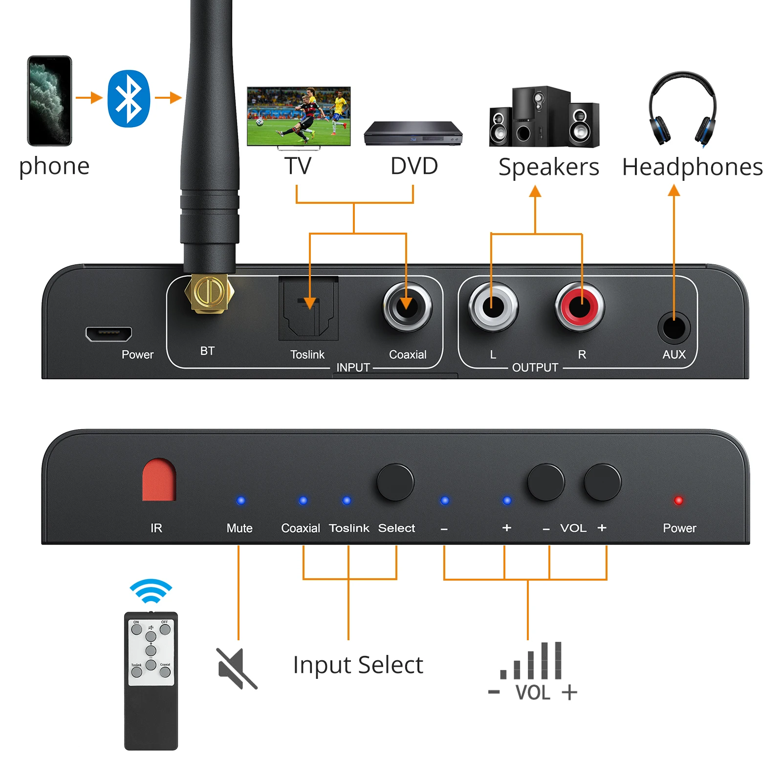 DAC конвертер Встроенный bluetooth-совместимый V5.0 приемник 192 кгц цифровой коаксиальный Toslink в аналоговый стерео L/R RCA 3,5 мм аудио конвертер