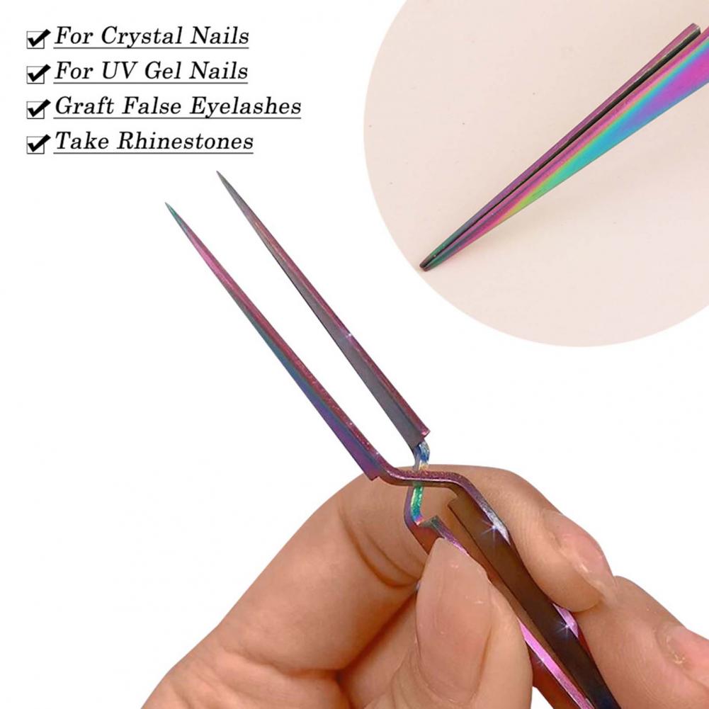 Пинцет для наращивания ресниц Антистатическая эргономичная ручка из нержавеющей стали Разноцветные пинцеты для ногтей для красоты