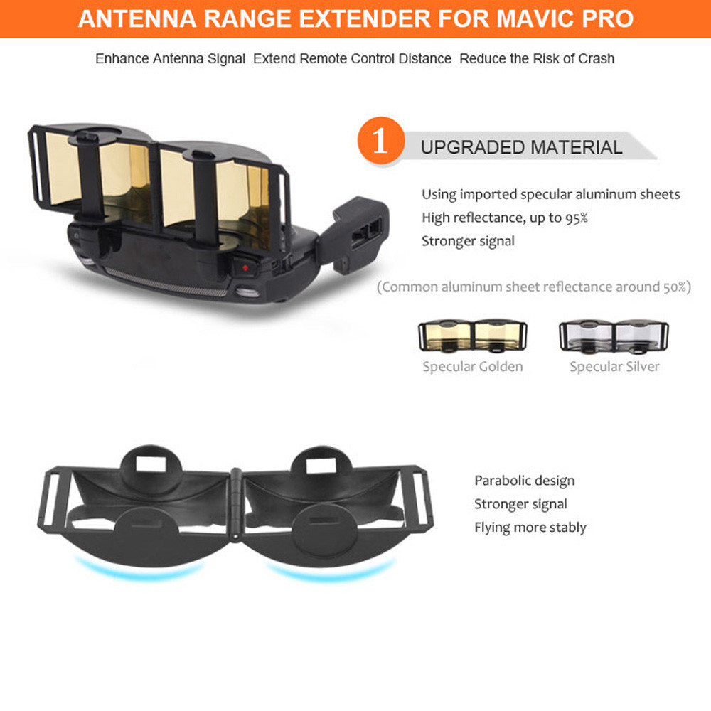 Сигнал дистанционного управления Расширитель Усилитель антенный усилитель диапазона для DJI Mavic Pro Mavic Air Spark Характеристики: удаленный сигнал Плата расширения, алюминиевый материал, который является идеализированной антенной и Производит пучок карандаша. Если отражатель имеет овальную форму, он генерирует Луч вентилятора. Чтобы избежать сигнала Проблемы из-за потери Или жареная машина. Повышение сигнала, безопасность полета. В Пленка поверхности оторвана до установки, с металлическим листом Лицом наружу. Состояние: новое Цвет: как на фотографии Показан) Вес: 40 г Применимые модели: для DJI Mavic Pro Mavic Air SparkВключает: