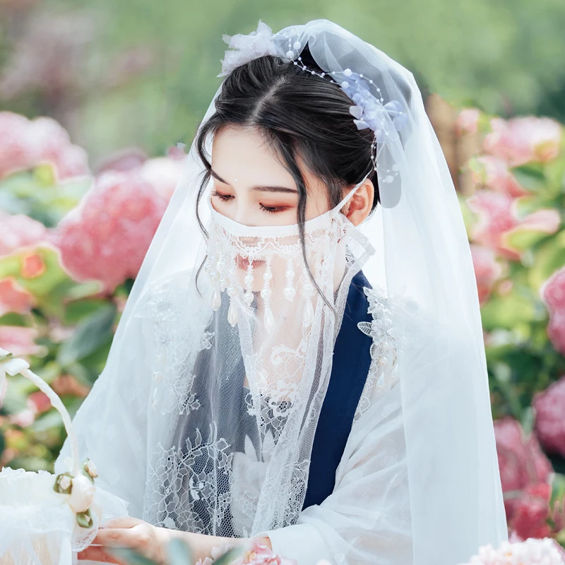 Материал вуали: кружевные аксессуары: жемчужная кисточка