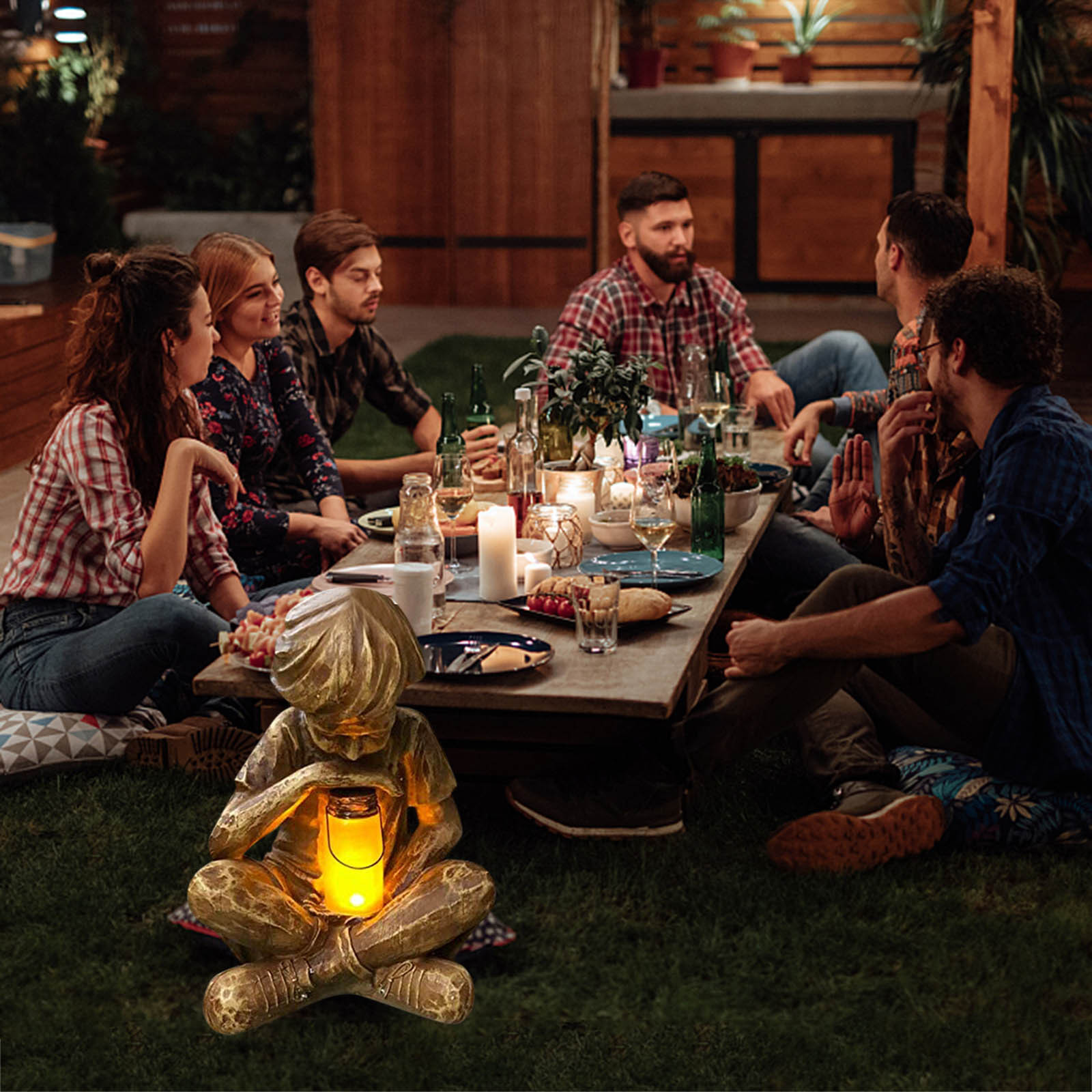 Бутылка, держащаяся в руках мерцания Божьей статуя мальчика, содержит светодиодный светильник,