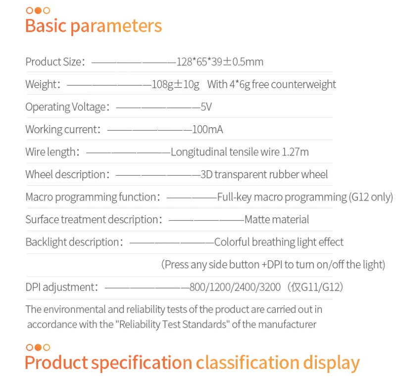 5. The use of enhanced durability game level Micro- motion, not only to move quickly, but also to click accurately, the mouse uses game specific white dot Micro- motion, strong rebound, long-term use, the feel is not easy to reduce!