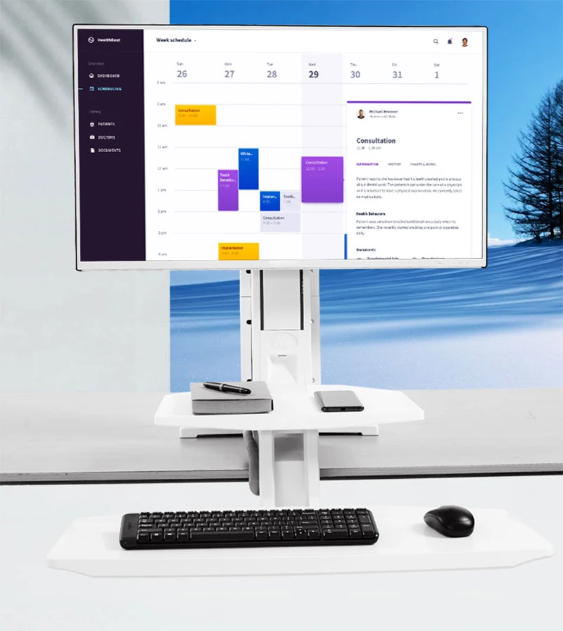 ST35-это настольная рабочая станция с зажимом, которая позволяет вам зажимать ее на любом существующем столе с фиксированной высотой и мгновенно преобразовать вашу длинную сидячую рабочую позицию в рабочую станцию с активной подставкой. Конструкция в механической системе балансировки, Клавиатура и монитор перемещаются в тандеме одним нажатием или тягой, чтобы с легкостью установить высоту работы. Вмещает один монитор от 22 ”до 32” с максимальной емкостью веса 24,2 фунтов (11 кг). Интерфейс VESA поставляется с полным диапазоном регулировки монитора после установки, включая высоту, вращение на 360 ° и наклон, обеспечивает эргономичность вашего глаза, рук, спины и шеи.