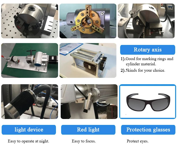 4. fieber лазерная маркировочная машина может добавить Z подъема, конвейера и роторного устройства, чтобы помочь клиентам гравировать на различные формы и высоты элементов.