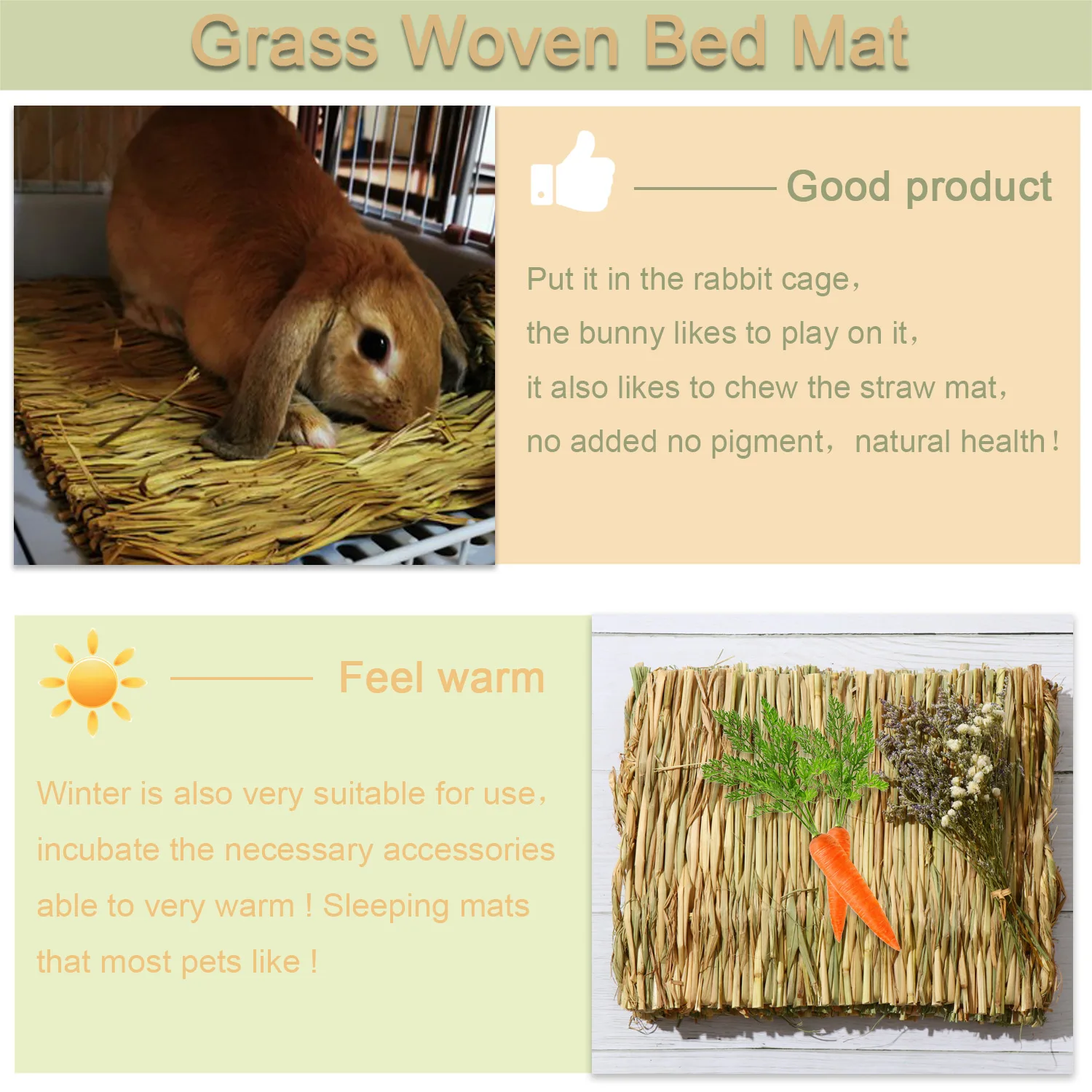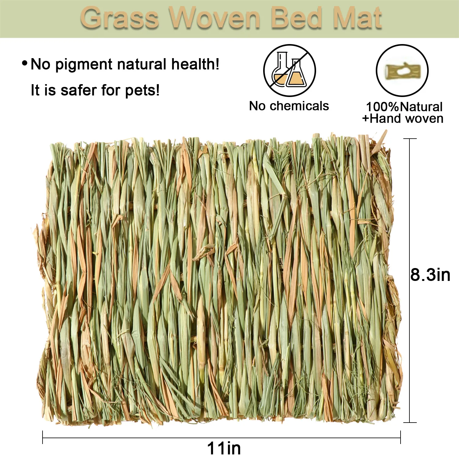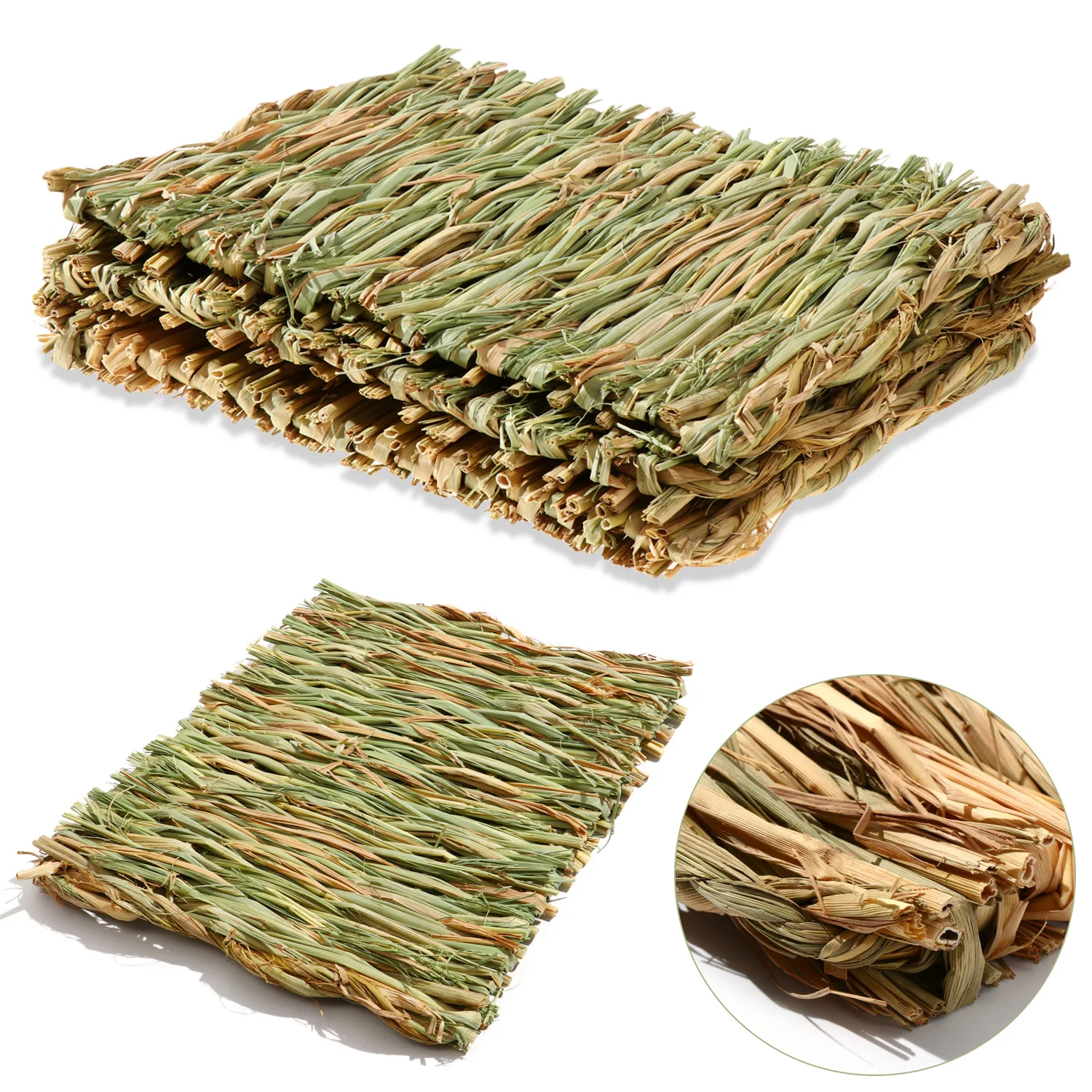 3 шт., коврики с кроличьей травой, натуральный соломенный тканый коврик для кровати, игрушки для домашних животных для хомяка, кролик, морская свинка, гнездо, Травяной коврик для домаших животных