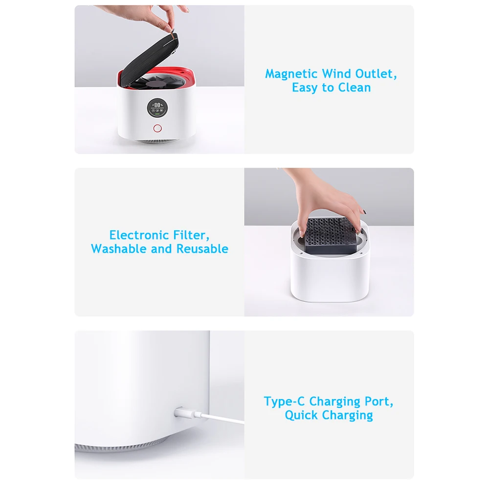 [Настольный очиститель воздуха] использует электронный фильтр для удаления вредных веществ, не нужно заменять, больше экономит деньги. Безопасен в использовании, высокая скорость удаления, Эффективная очистка воздуха.