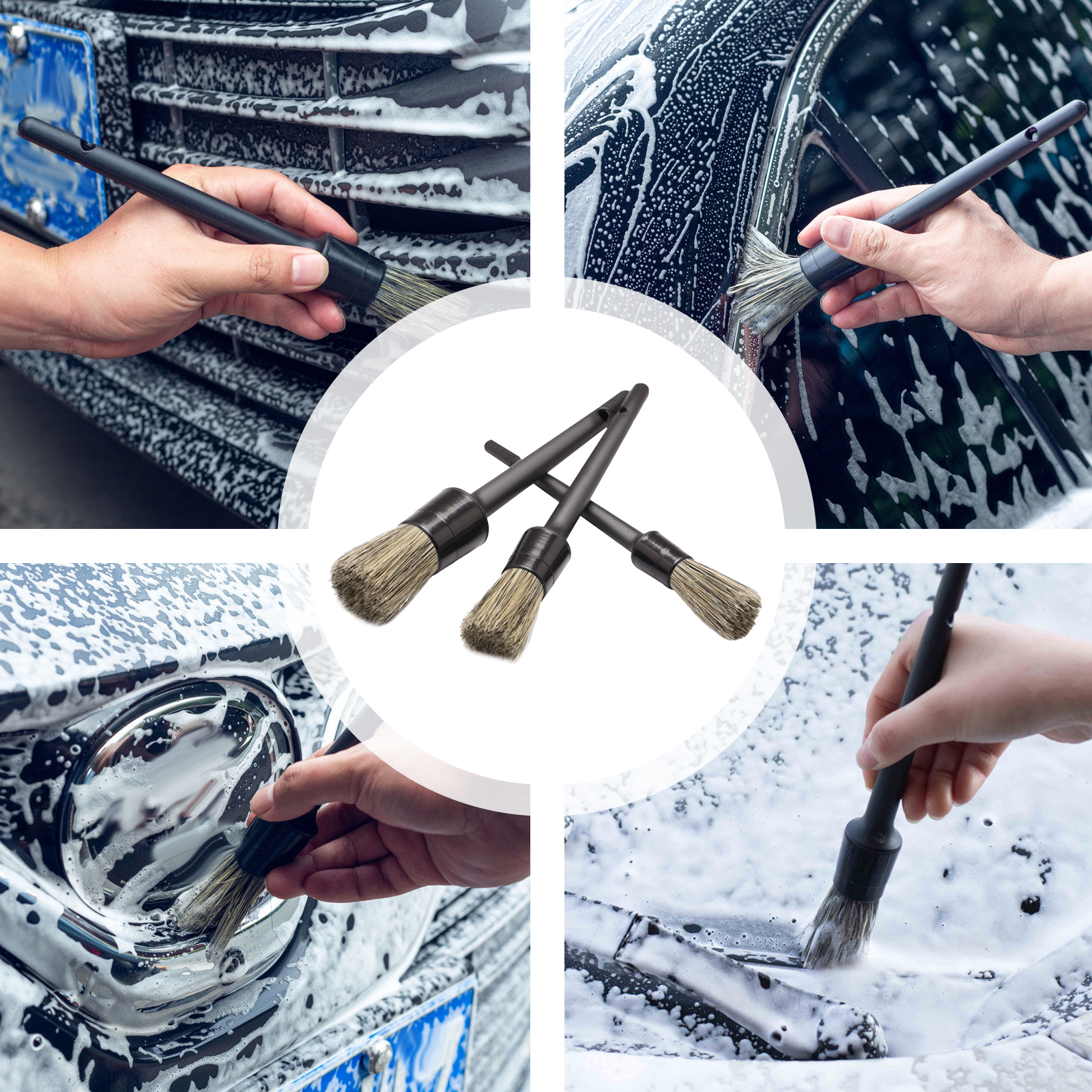 3 шт. натуральный кабан для волос, набор кистей для автомобиля, мягкая щетина, набор кистей для чистки автомобиля, Atuo, мойка колес, внешние аксессуары