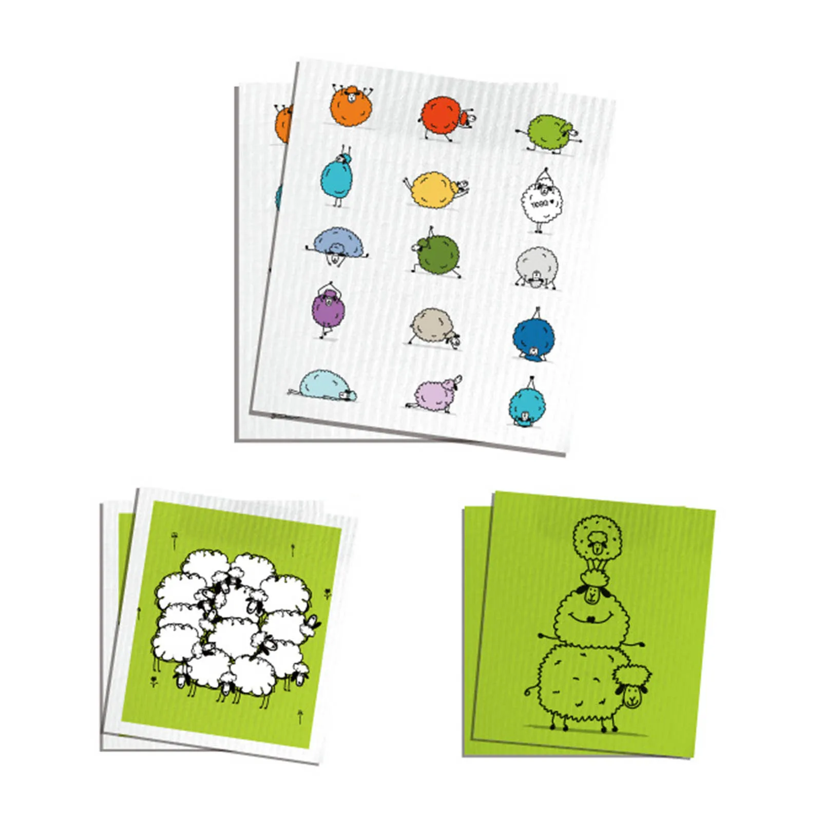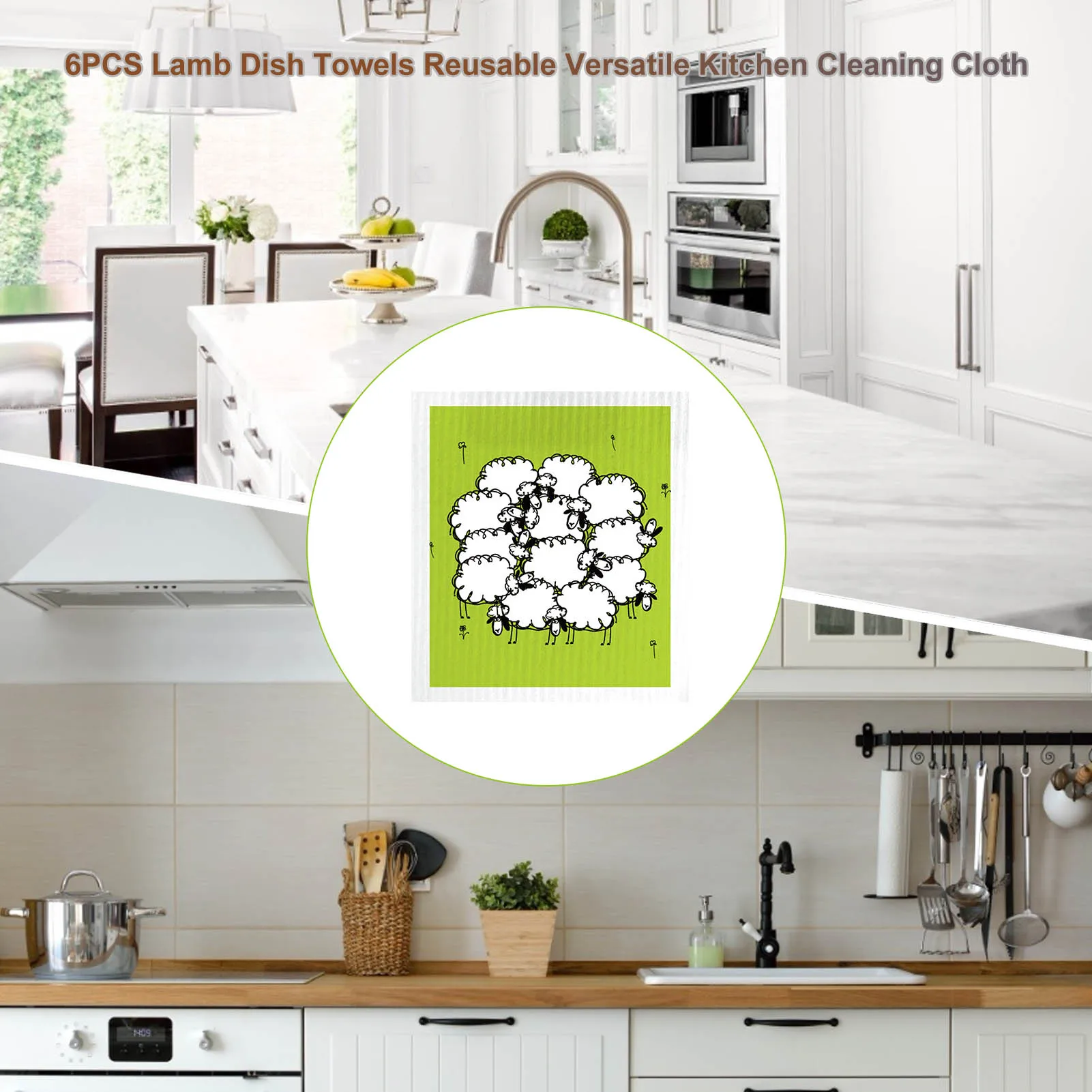 6 шт прекрасный овечий дизайн многоразовая универсальная немецкая древесина целлюлоза хлопковая ткань для очистки кухни абсорбирующие кухонные чистящие инструменты