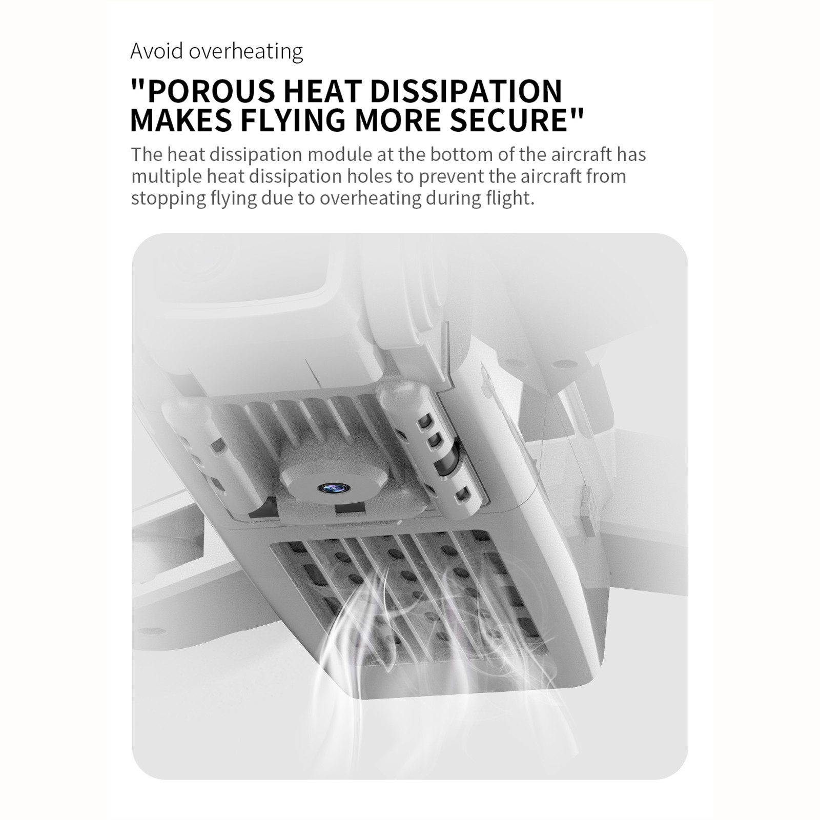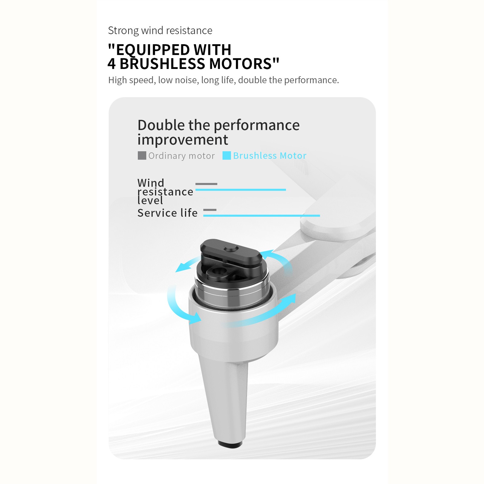 -Brushless motor. It is so quiet, but very powerful when running. The malfunction rarely occurs and the replacement of the engine is rarely necessary, which makes your flight more pleasant.