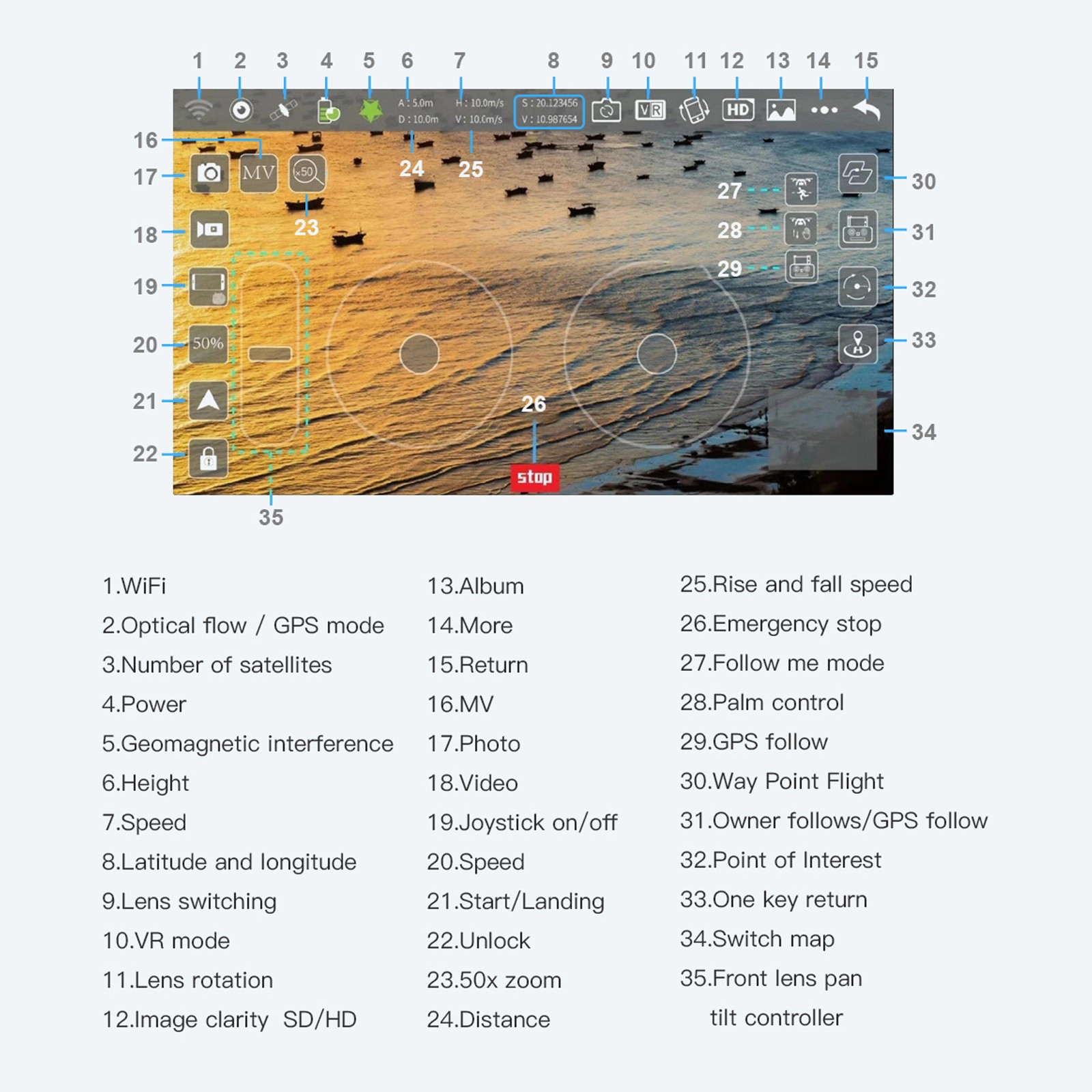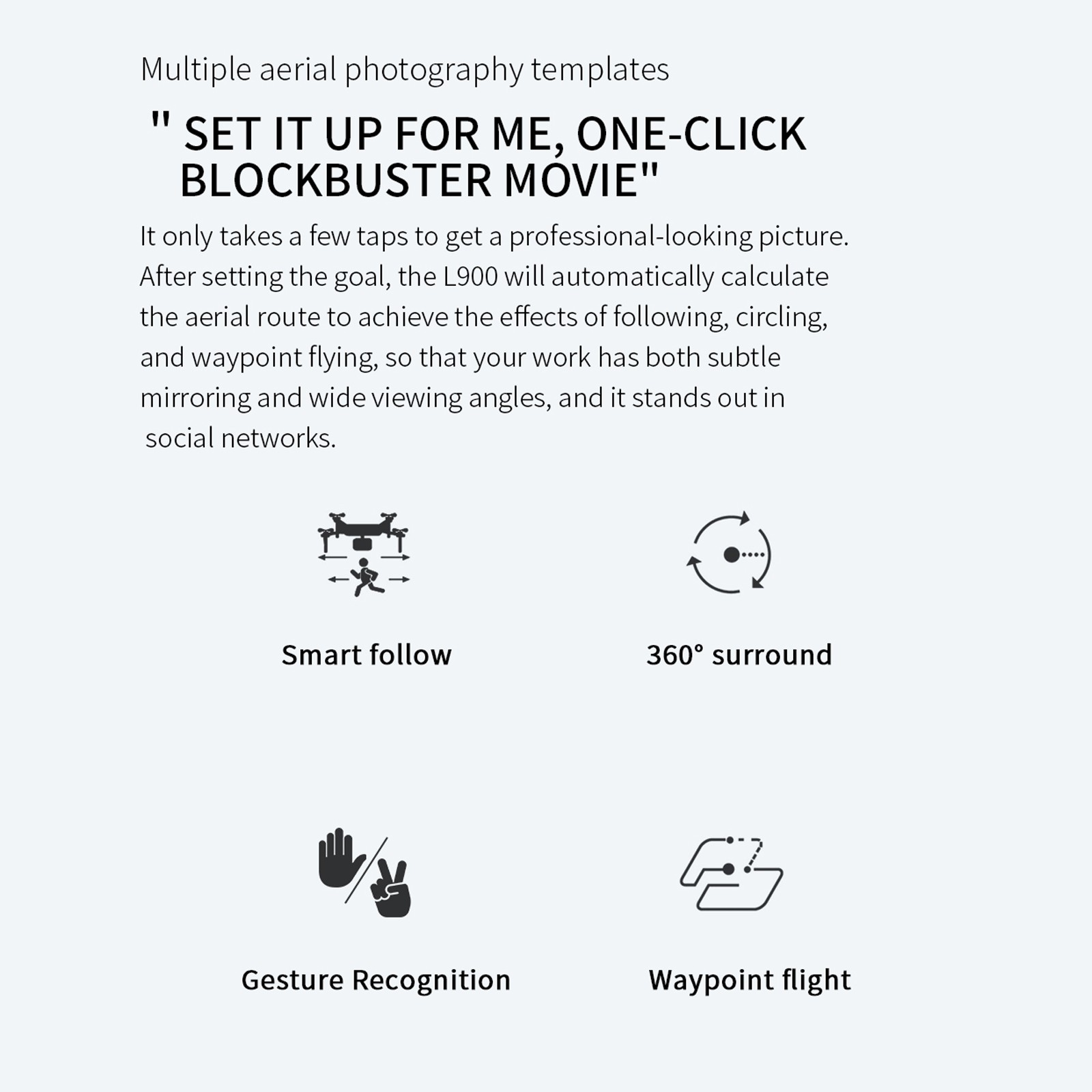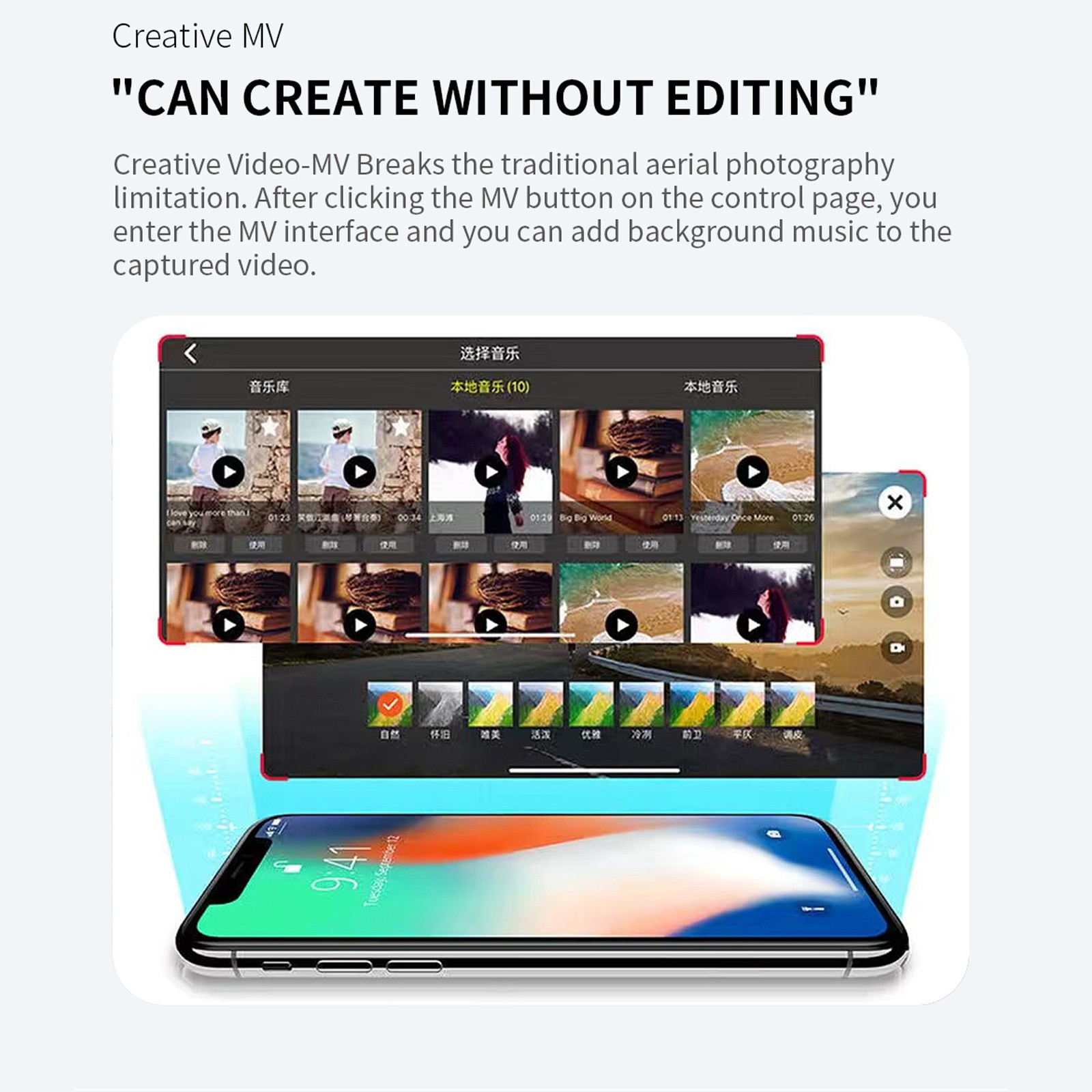 -Follow me way. the drone will automatically follow and capture you wherever you move. Keeping you in the frame at all times, easier to get complex shots, provides hands-free flight and selfie