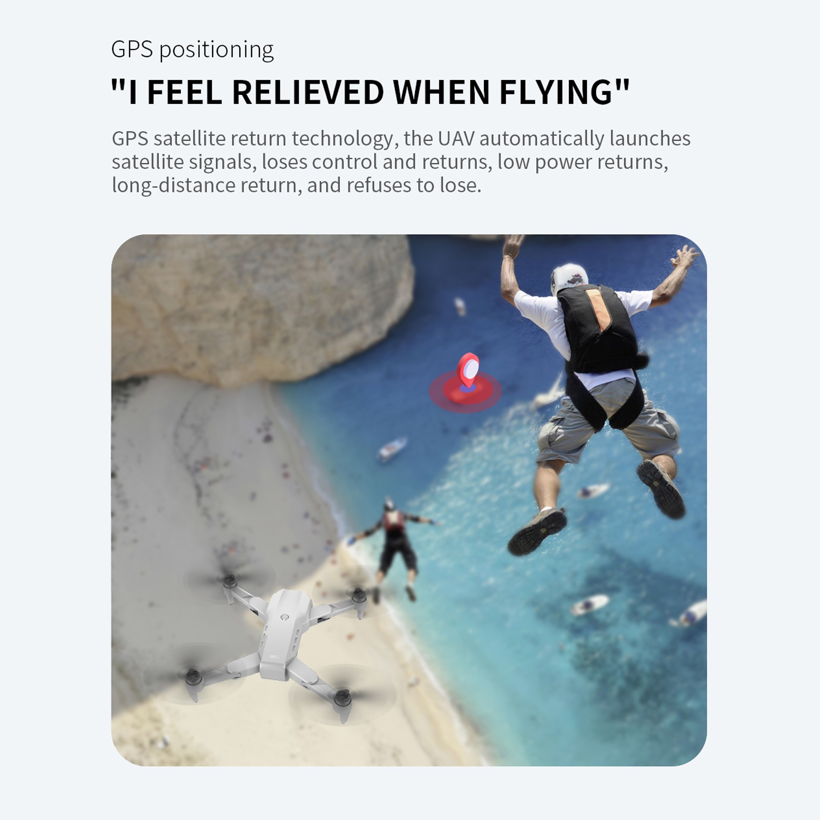 - Flight assisted by gps. Provides you with accurate positioning details for your drone. the drone will automatically return home precisely when its battery is low or the signal is weak when flying out of range, never worry about losing the drone.