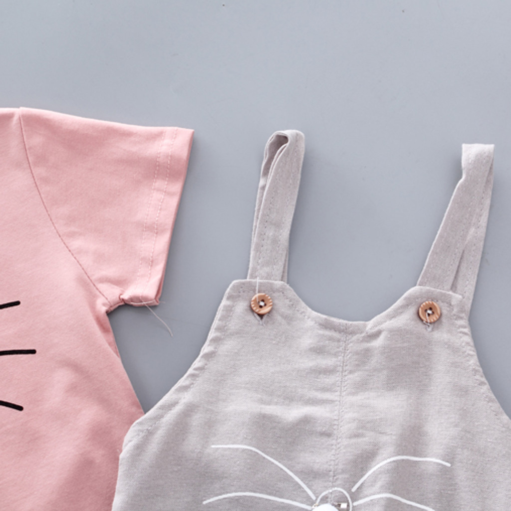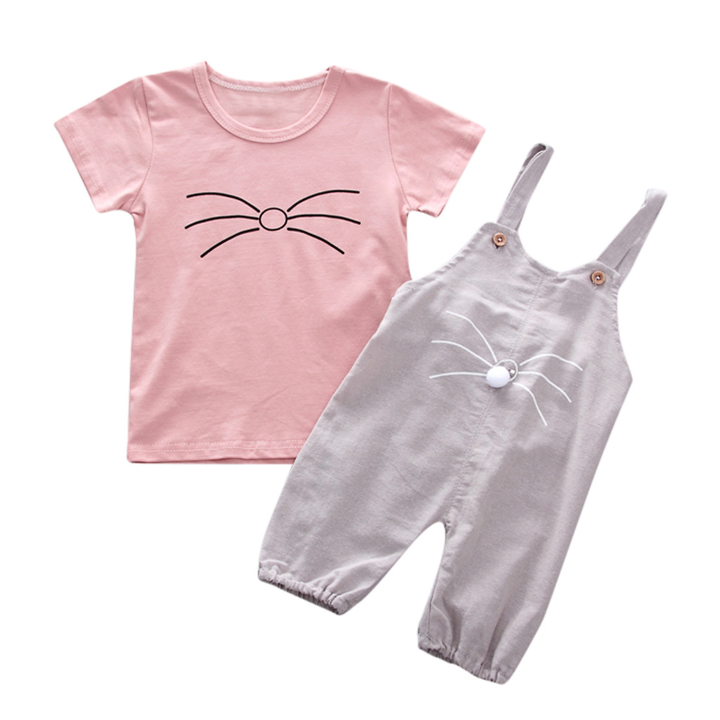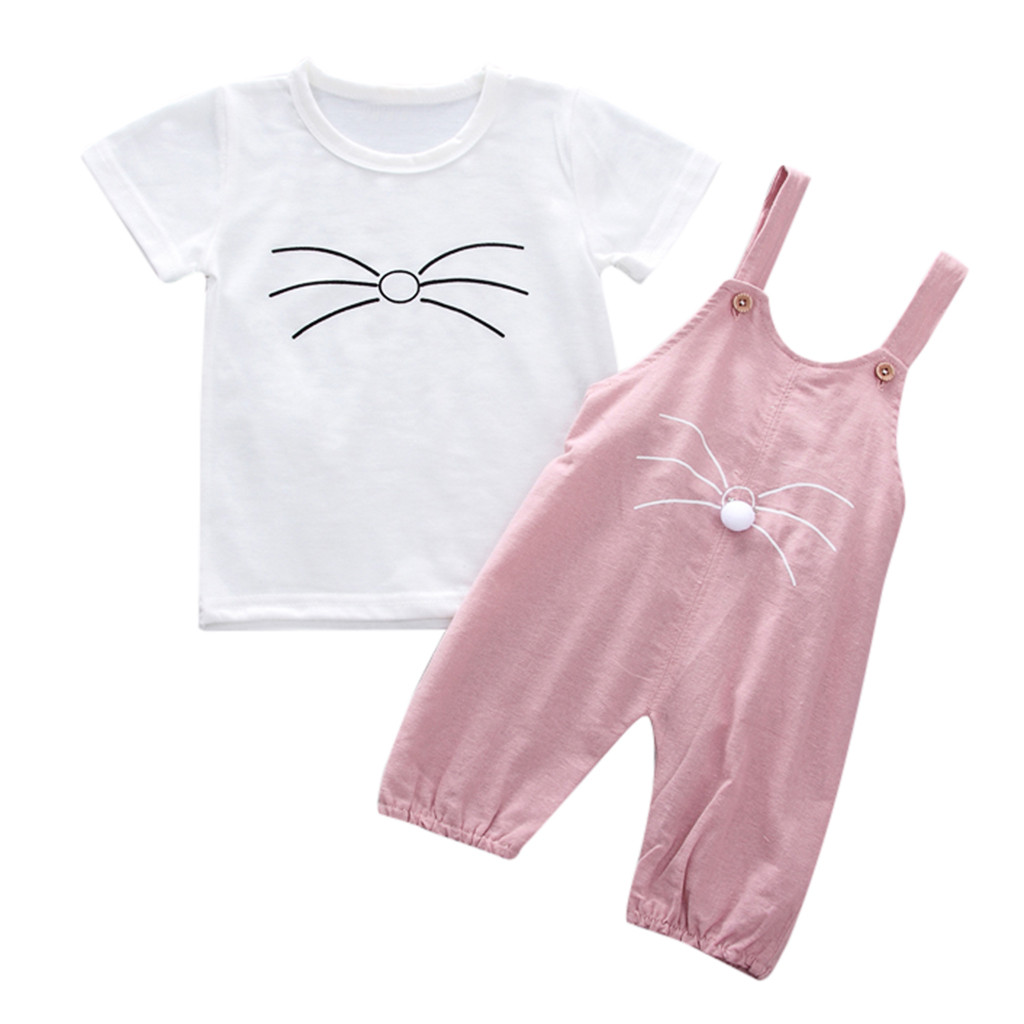 Футболка с рисунком кота для маленьких девочек + комбинезон
