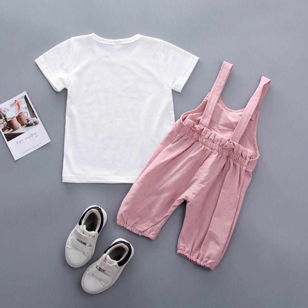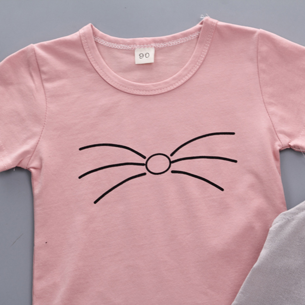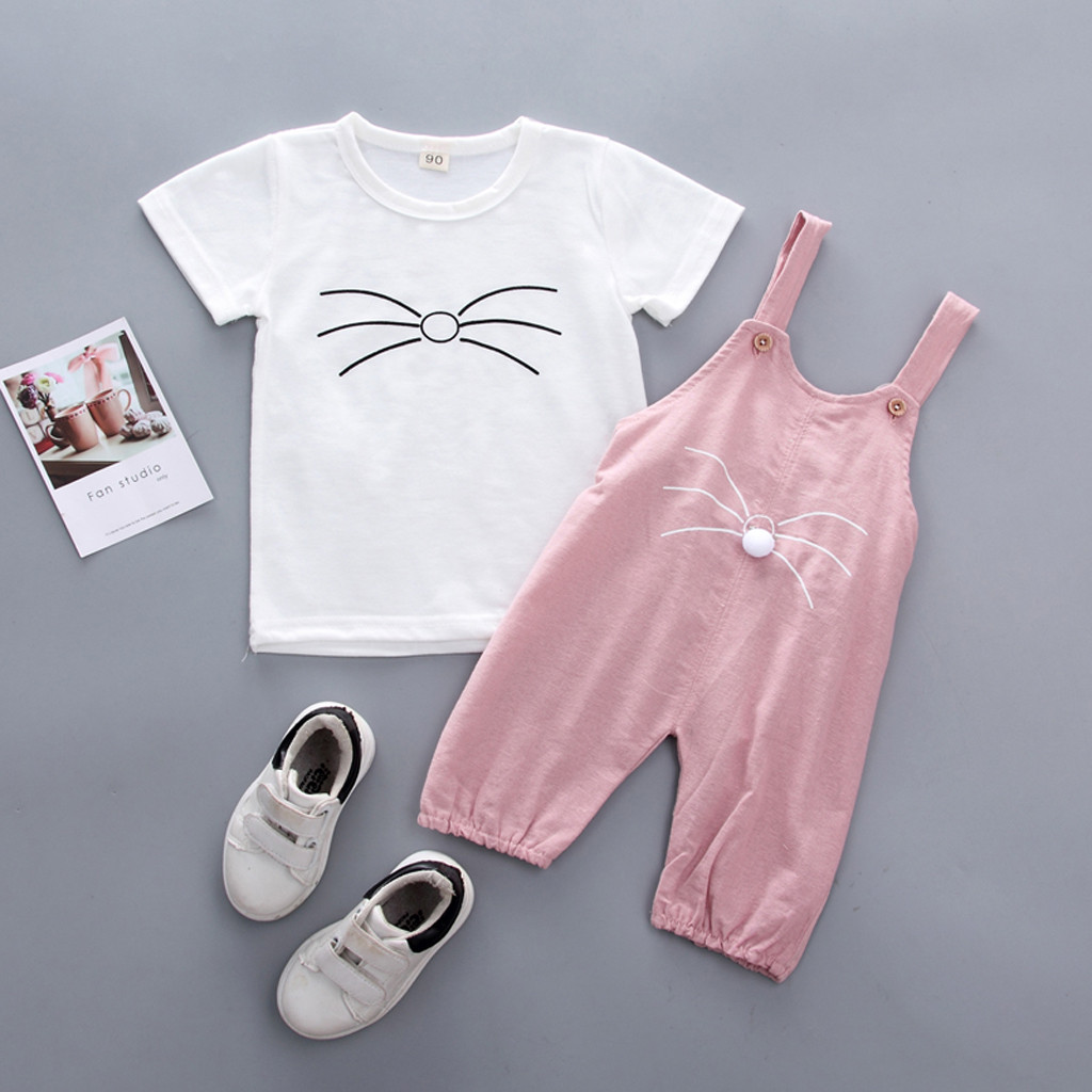 Футболка с рисунком кота для маленьких девочек + комбинезон