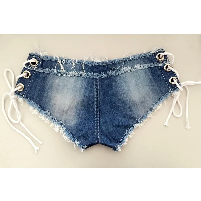 Beachwear Sexy Denim Booty Shorts Lace Up Bandage Tassel Hole Micro Mini Macrame Short Jean Bikini Thong Beach Tanga Hot Pants