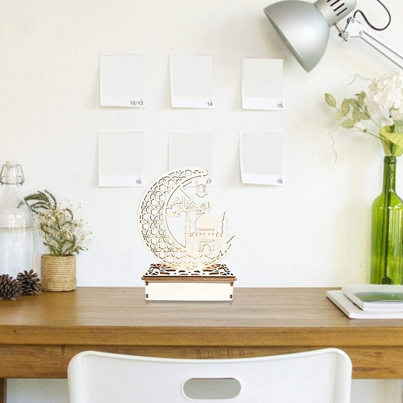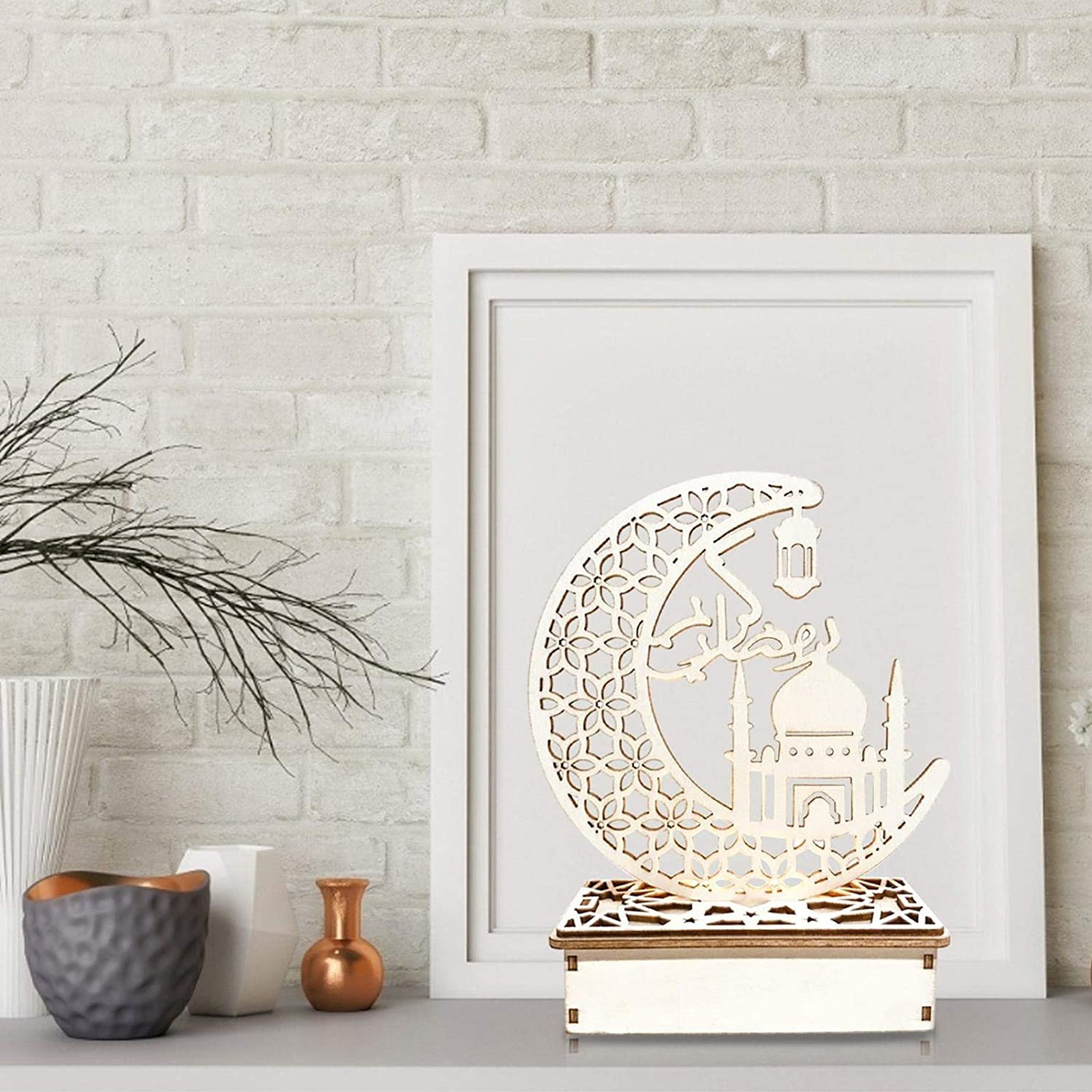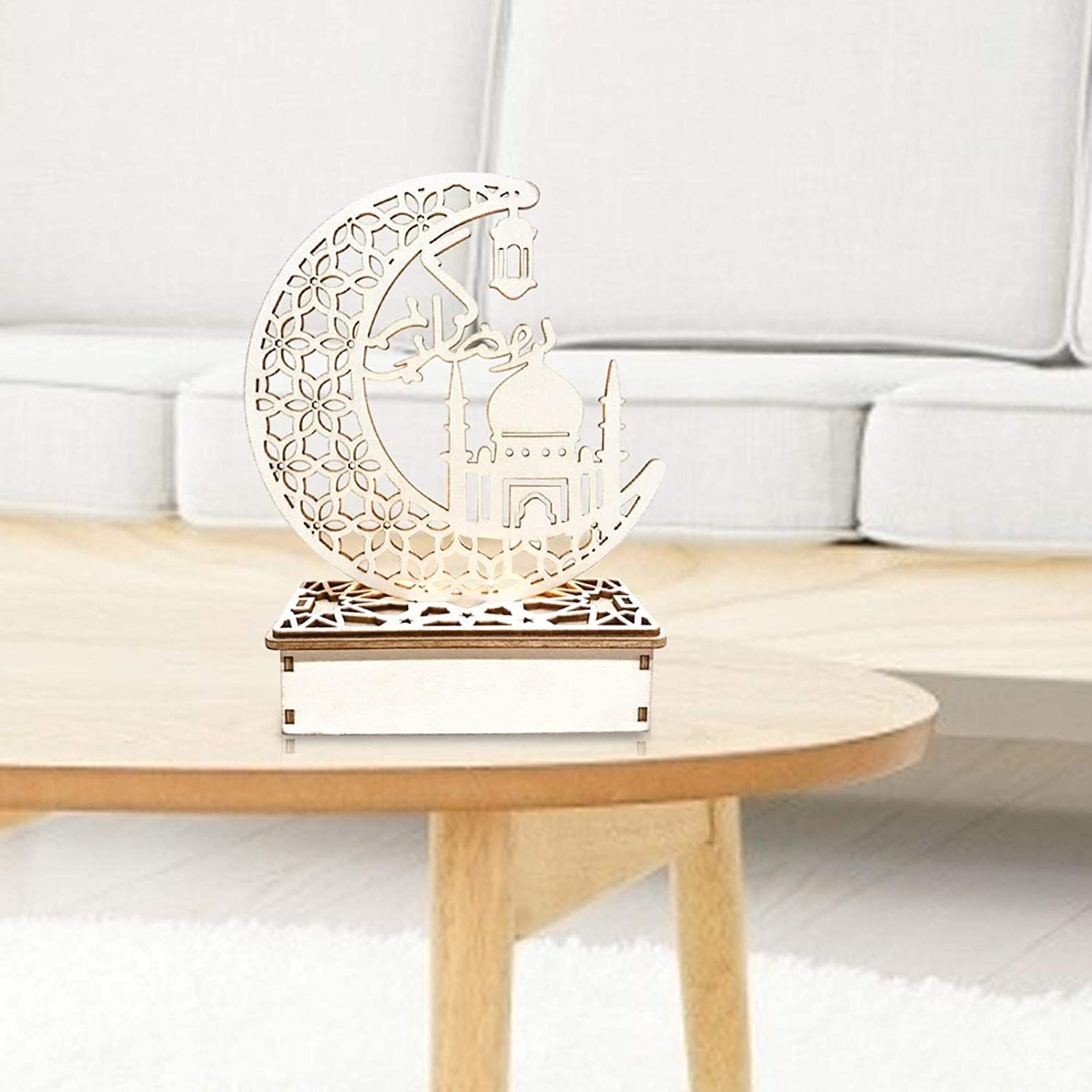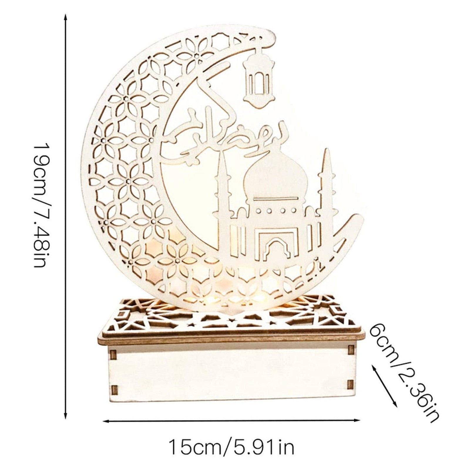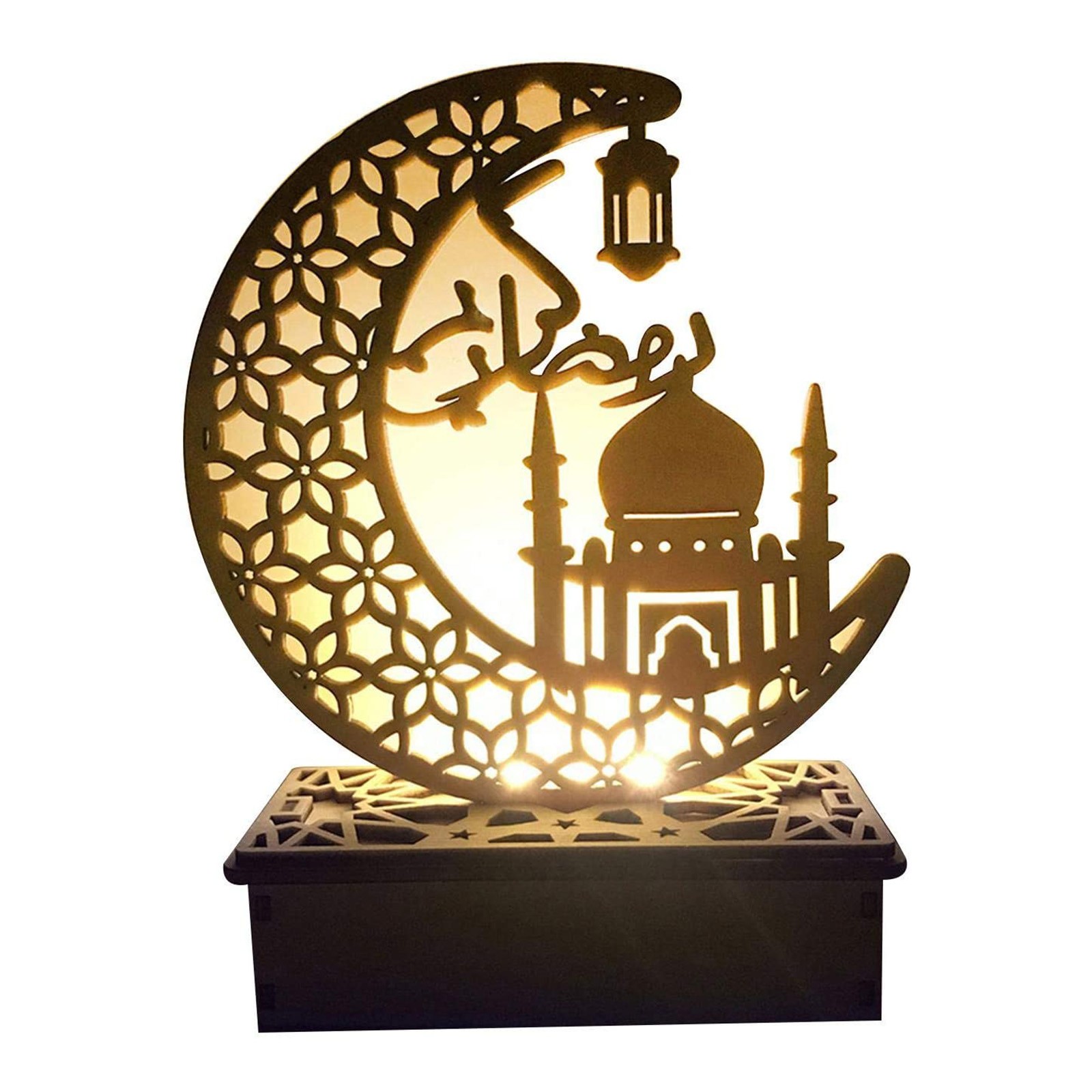 4. Элегантный дизайн: дизайн деревянных украшений имеет выдолбленный Мусульманский Стиль. Это традиционный фестиваль Eid al Fitr. Привлекательный внешний вид, может быть хорошим украшением дома и фестиваля.