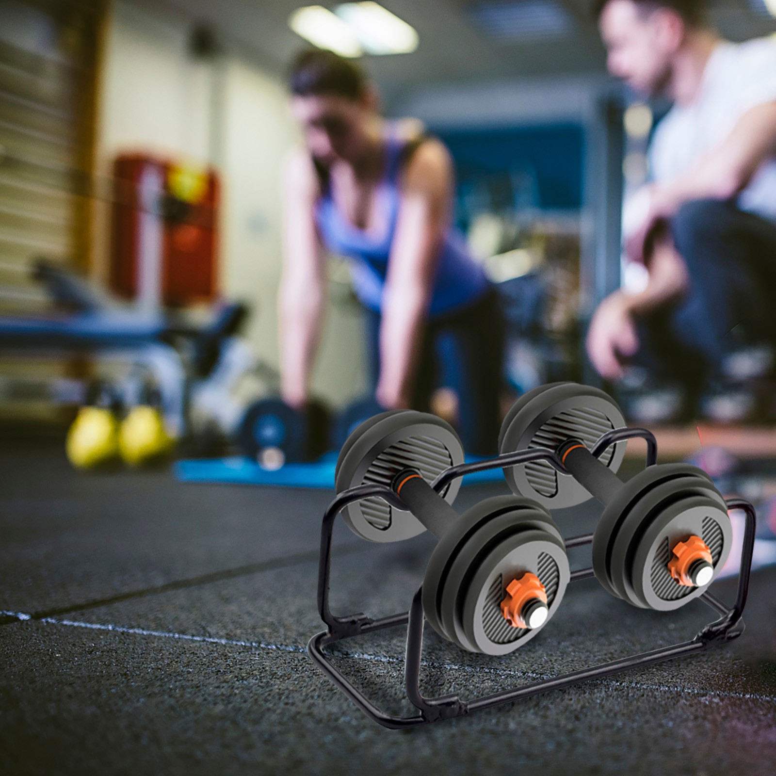 Стойка для гантелей предназначена для хранения 2 пар шестигранных или резиновых гантелей в диапазоне от 5 до 18 кг. После тщательной обработки и дизайна он изготовлен из высококачественных материалов, которые прочные, износостойкие и долговечные. Прочная поддержка обеспечивает удобный способ хранения весов аккуратно и легкий доступ к ним. Уникальный дизайн позволяет избежать столкновений или царапин при хранении гантелей. Стойка для гантелей может поддерживать различные типы гантелей. Например, электрические гантели, фиксированные гантели, прорезиненные гантели и другие типы гантелей.DОписание: