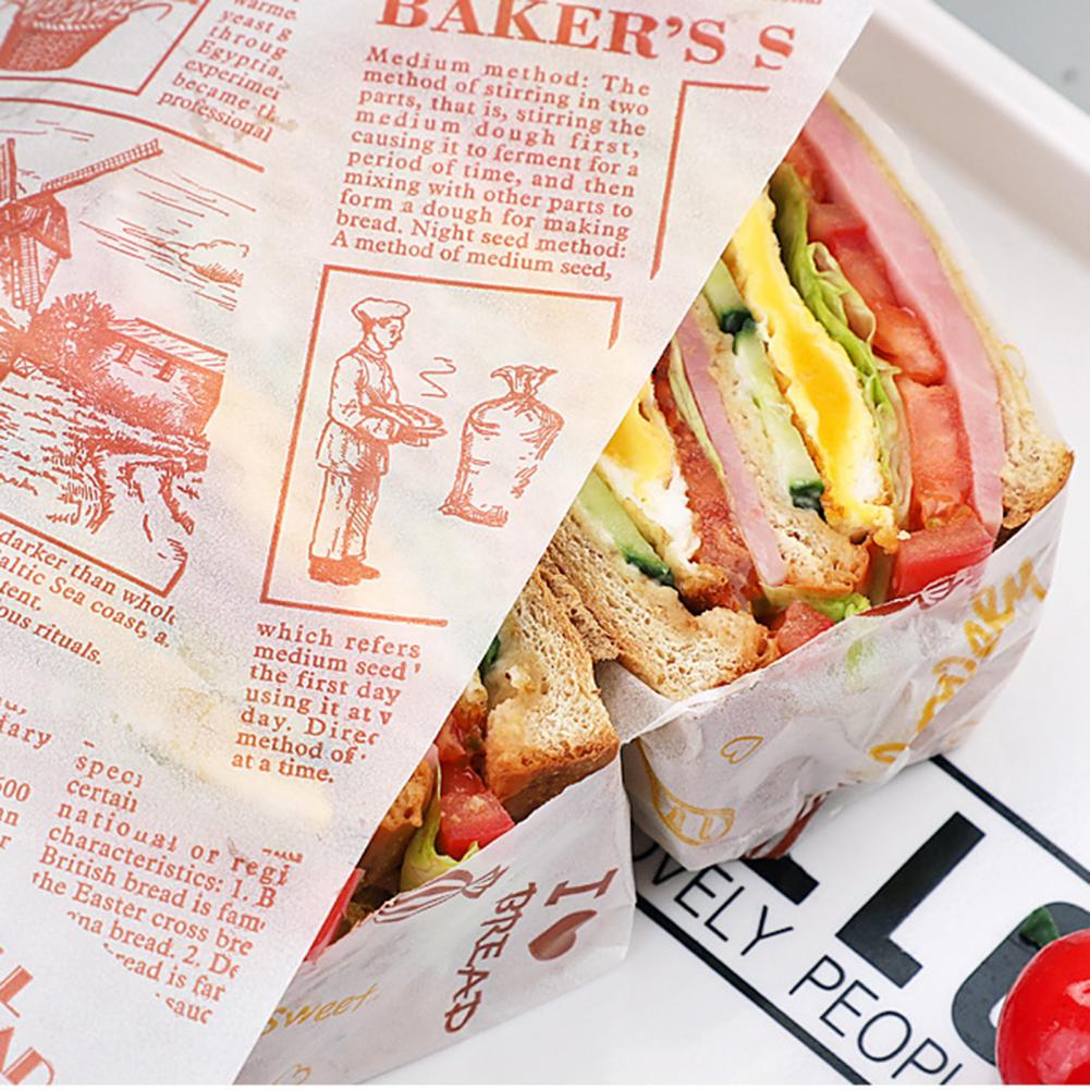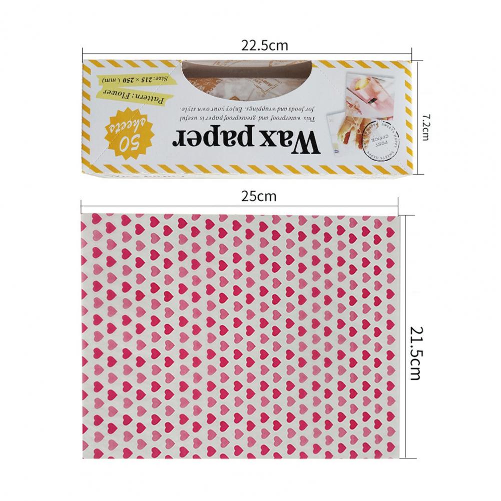 50 шт./пакет вощеная бумага с рисунком сердца, антипригарная пищевая упаковка, маслостойкая сухая бумага для гамбургеров для пикника