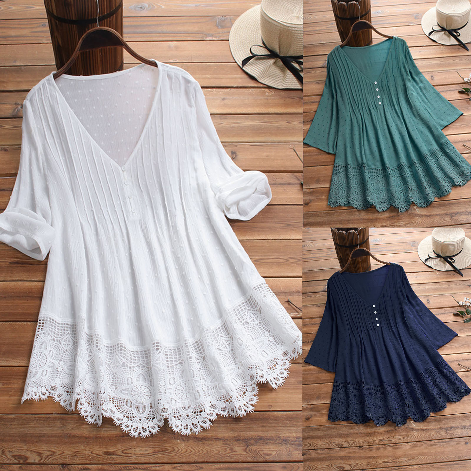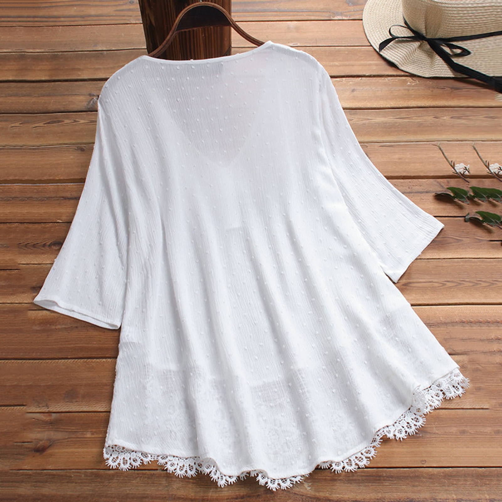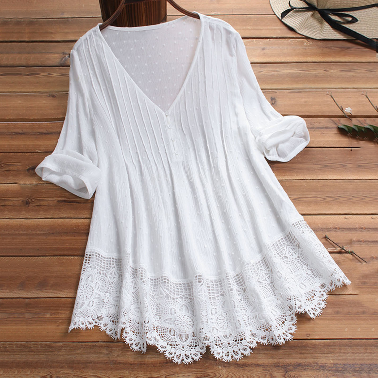 Женские винтажные кружевные лоскутные Блузы с бантом и v-образным вырезом, три четверти, топ-футболка