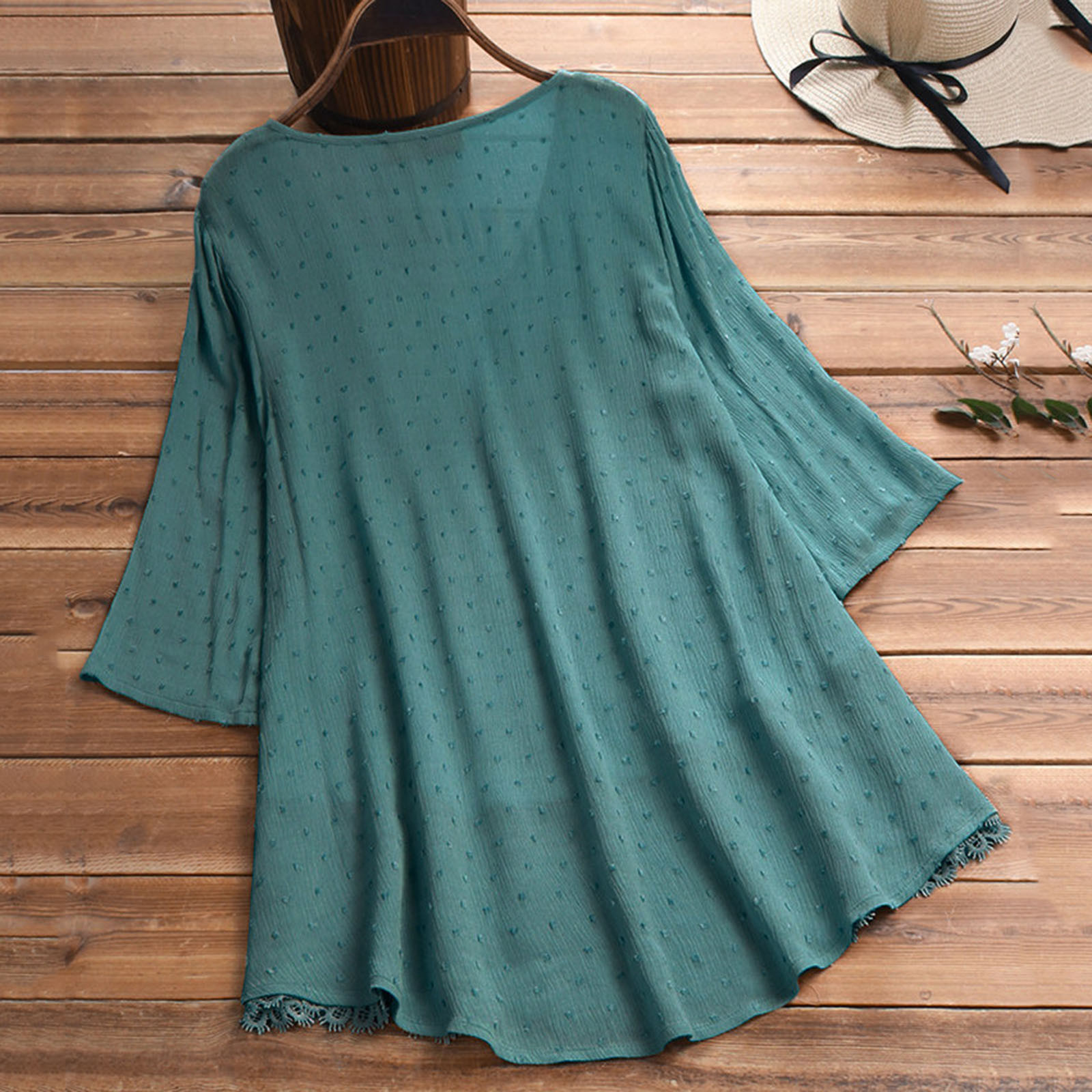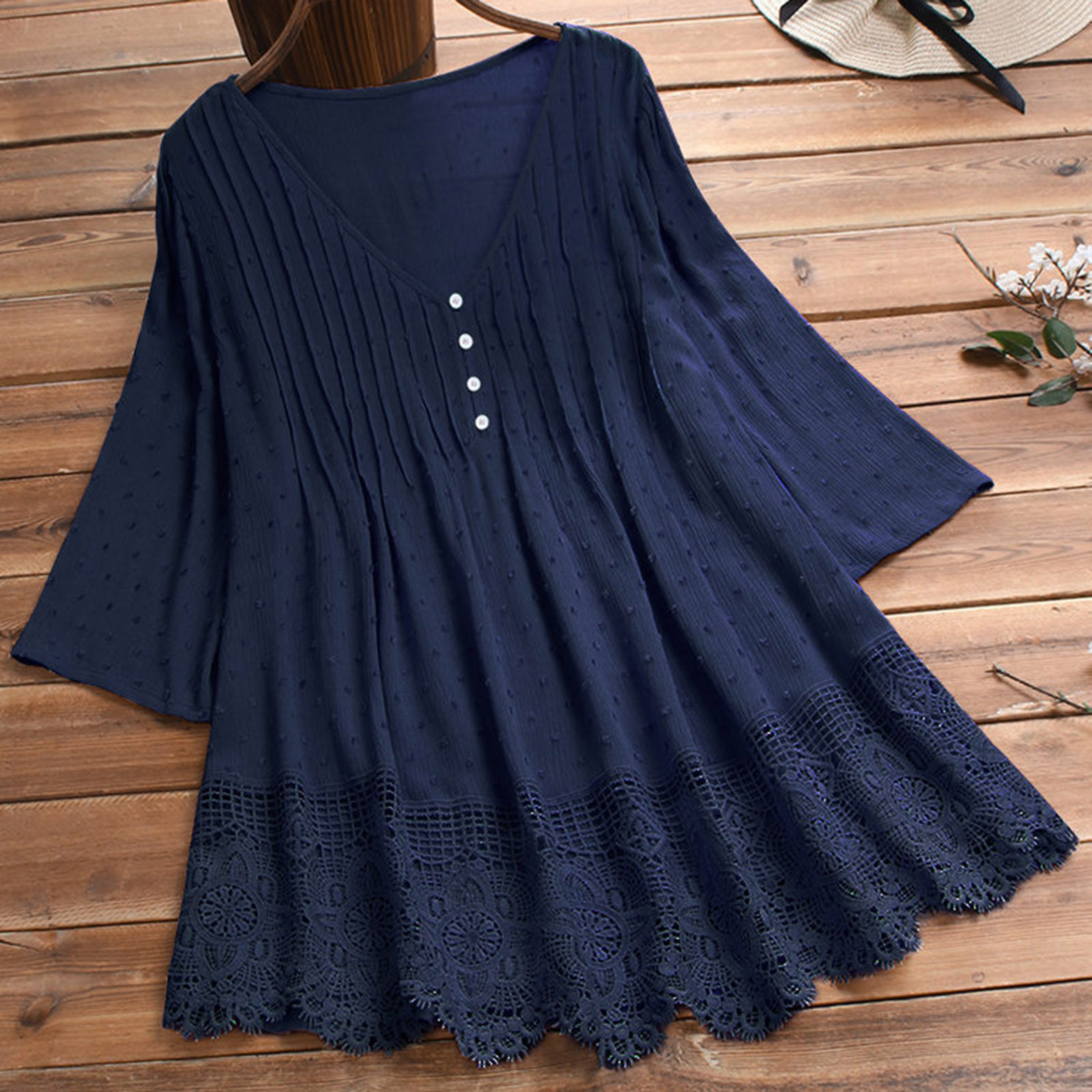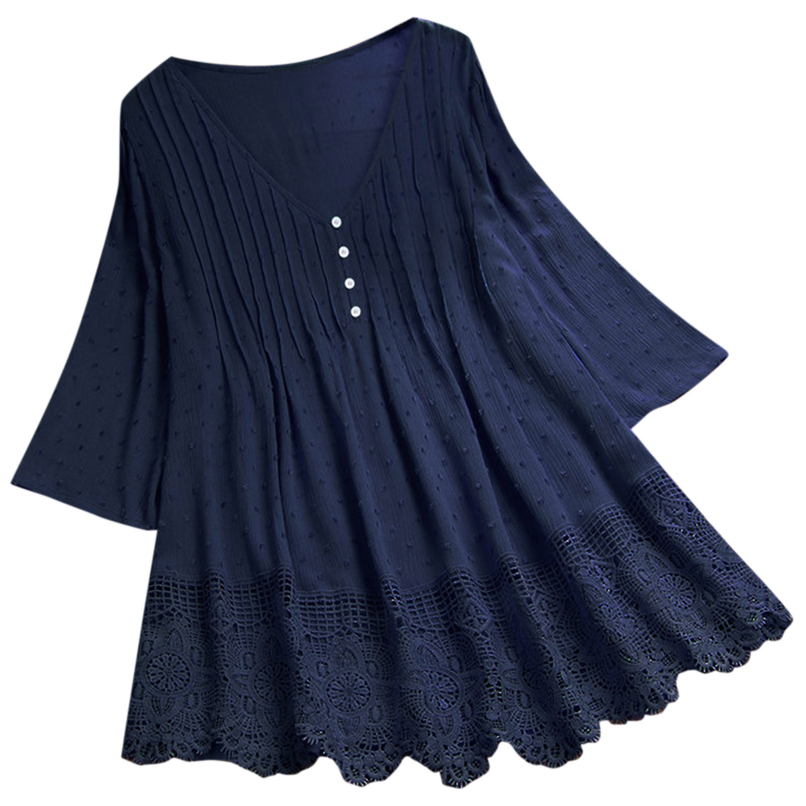Женские винтажные кружевные лоскутные Блузы с бантом и v-образным вырезом, три четверти, топ-футболка