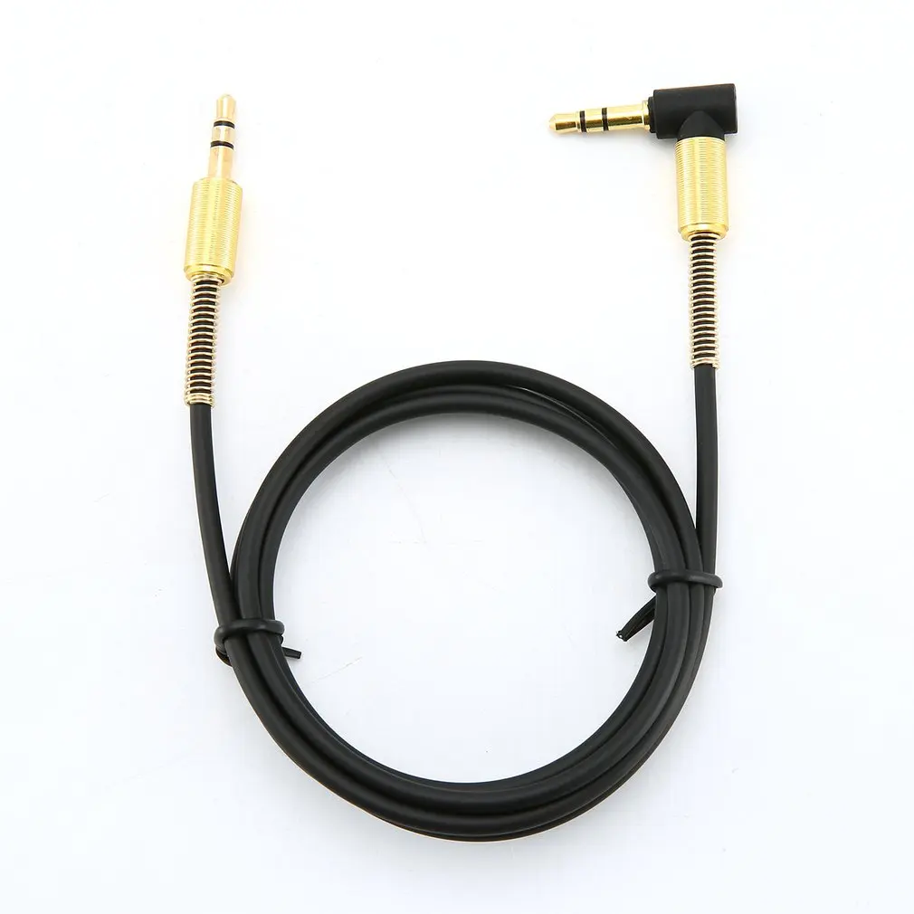3,5 мм Jack стерео аудио 1 м аудио кабель со штыревыми соединителями на обоих концах для подключения с поворотом на 90 градусов вправо Aux кабель провод шнур с пружинным Защитная крышка