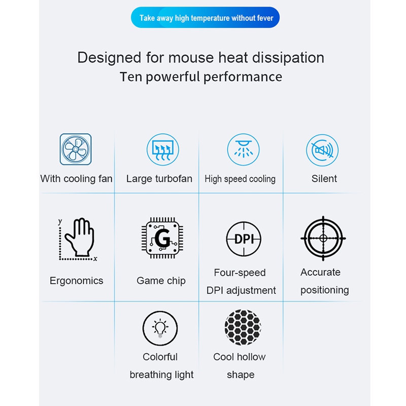 3. [Производительность] с охлаждаемым сильным вентилятором, большим для турбо-вентилятора, высокоскоростным охлаждением, бесшумным, эргономичным, игровым чипом, регулировкой DPI, точным позиционированием, красочным медленным дыхательным светильник, крутой полый стиль.