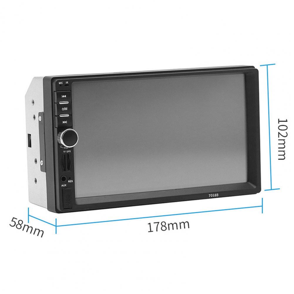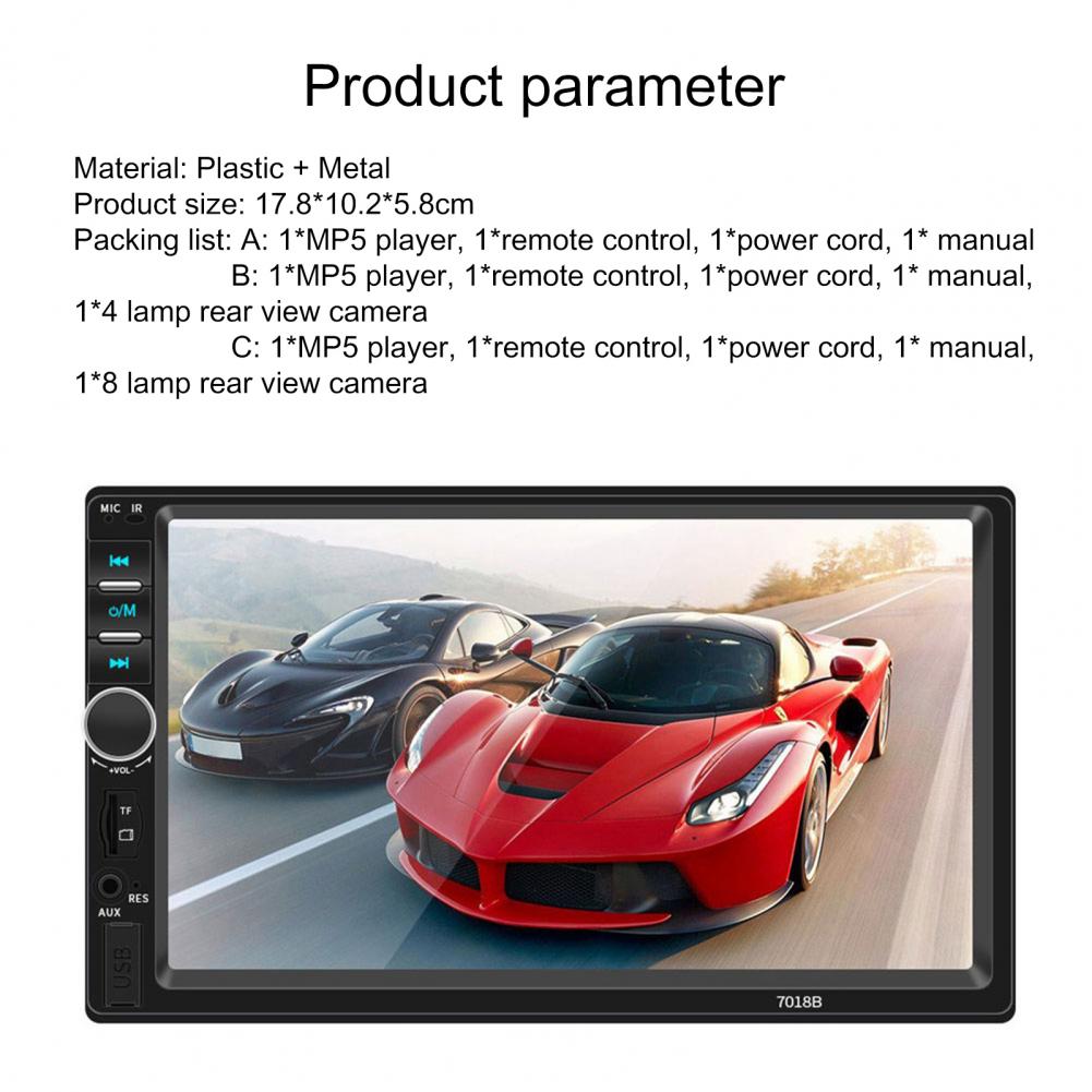 Длина плеер является 17,8 см, ширина 10,2 см, высота 5,8 см. Экран плеера 7 дюймов большой. В комплект входит 1 плеер MP5, 1 пульт дистанционного управления, 1 шнур питания и 1 руководство пользователя. В комплект входит 1 плеер MP5, 1 пульт дистанционного управления, 1 шнур питания, 1 ручная книга и 1 камера заднего вида с четырьмя лампами. В комплект входит 1 плеер MP5, 1 пульт дистанционного управления, 1 шнур питания, 1 ручная книга и 1 камера заднего вида с восемью лампами.