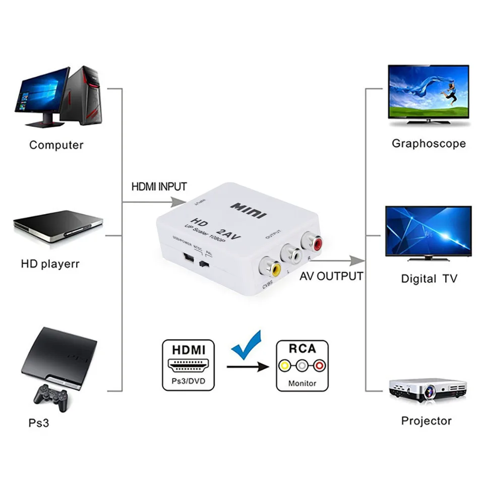 COOL DIER Новый HDMI-совместимый с AV RCA конвертер AV/CVSB L/R видео коробка HD 1080P 60Hz HDMI2AV поддержка NTSC PAL выход HDMIAV