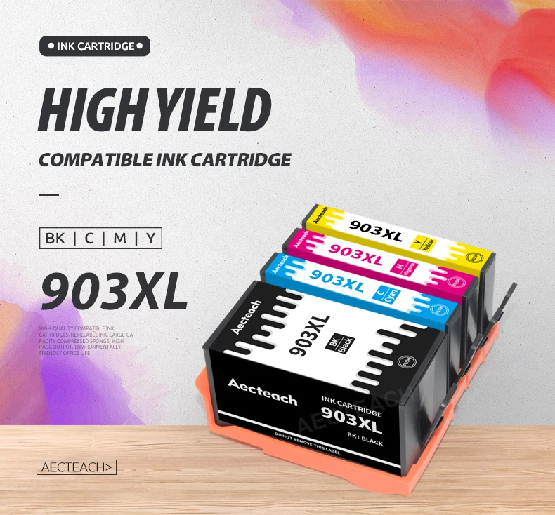1 черный картридж + 1 Голубой картридж + 1 пурпурный картридж + 1 Желтый картридж для HP 903XL, полный с чернилами