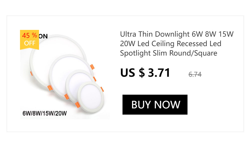 Описание товара Тип товара: Светодиодные панели/светодиодные светильники Мощность: 6 Вт 8 Вт 15 Вт 20 Вт Угол луча (°) 180 Входное напряжение: AC220-240V 50-60 Гц Цветовая температура: Теплый белый (2700-3200K) Холодный белый (6000-6500K) Применение Дом, отель, ванная комната офисная компания. И т. д. Рабочая температура: -40 - 55 °C Коэффициент мощности ПФ> 97% Срок службы: > 50000 часов Материал корпуса алюминий Гарантия 3 года Характеристика: 1) Защита окружающей среды 2) безопасный и простой в установке 3) длительный срок службы, более 50000 часов 4) Нет опасности разбитого стекла 5) низкое энергопотребление 6) Высокая эффективность, экономия энергии более 70% ~ 80% 7) модный дизайн 8) корпус из алюминиевого сплава
