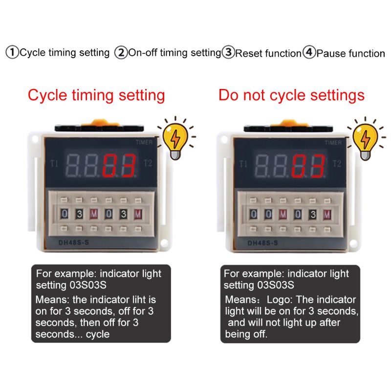 AC/DC 12V 24V 220V 380V DH48S-S Programmable Digital time relay cycle control Double Time Delay Relay Socket with Base