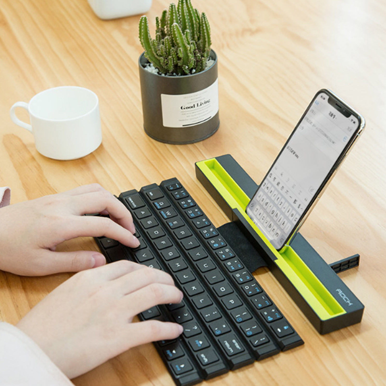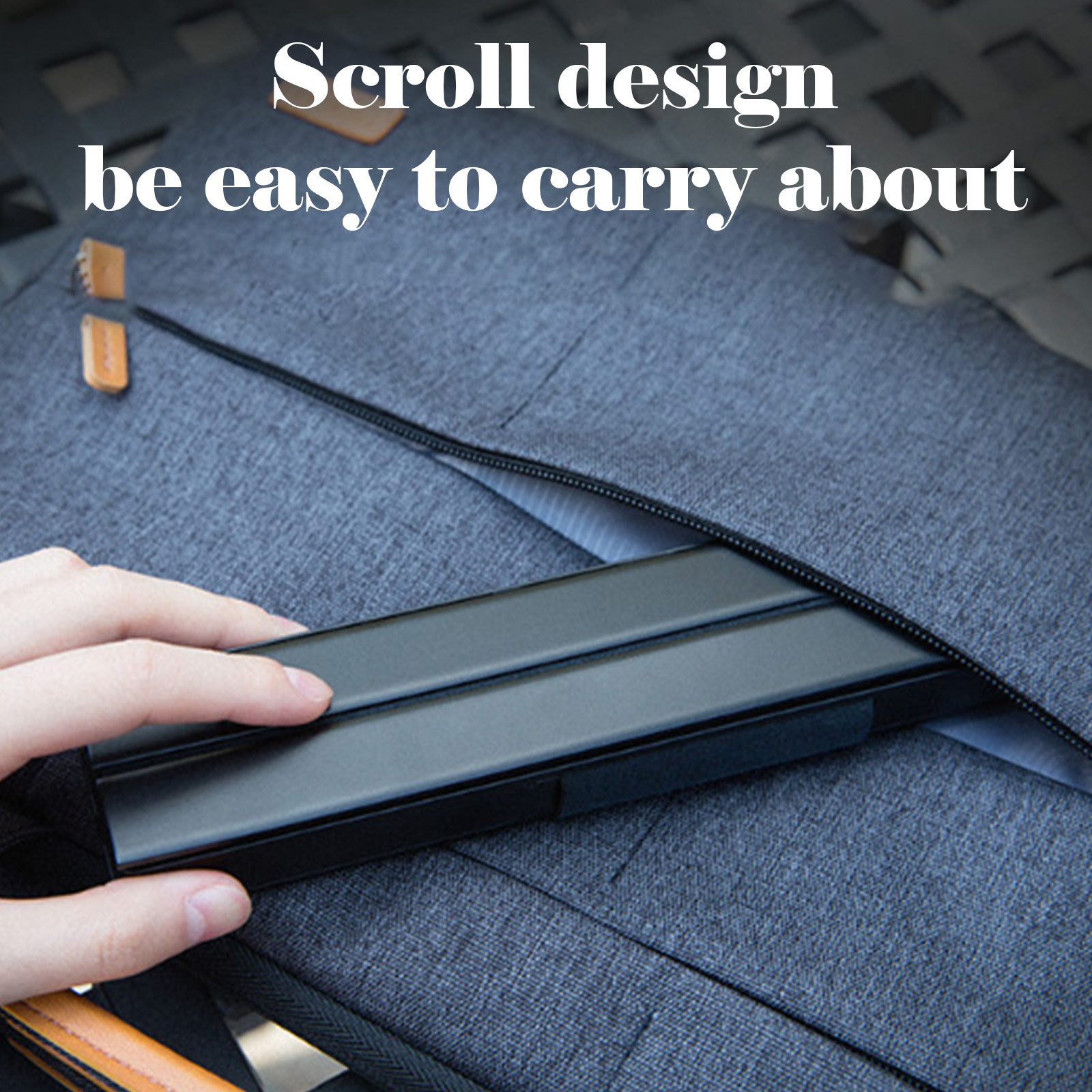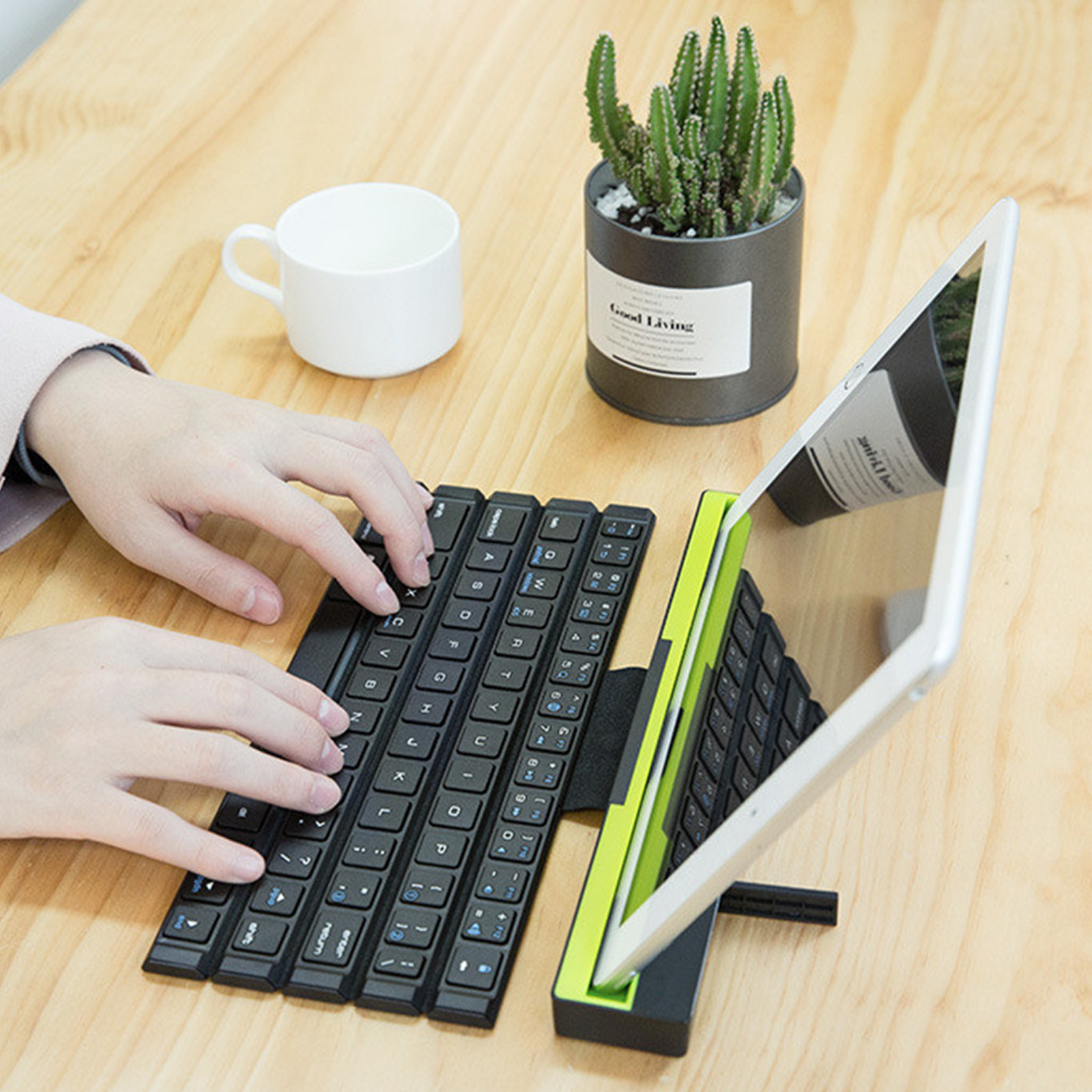 1. With holder for Table PC iPad iPod iPhone and smartphones, ect. 2. 64 keys compatible with IOS, Android, Windows systems. 3. Multi-device: pair up to 3 devices. 4. Auto On/Off- unroll/roll up keyboard. 5. 64 standard buttons, covering common functions and multimedia functions, standard key spacing, faster typing and more comfortable feel. 6. Keyboard surface spray rubber oil, Is not easy dirt, wear, anti-hand lines. 7. Folding small compact, can be put into the pocket after folding can dust.Specifications: