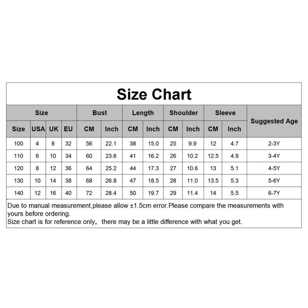 [Наши Размеры От 5 до 6 лет] Длина: 47 см/18,90 ", Бюст: 68 см/26,77", плеча: 28 см/11,0 ", рукава: 13,5 см/5,3" (прибл.)