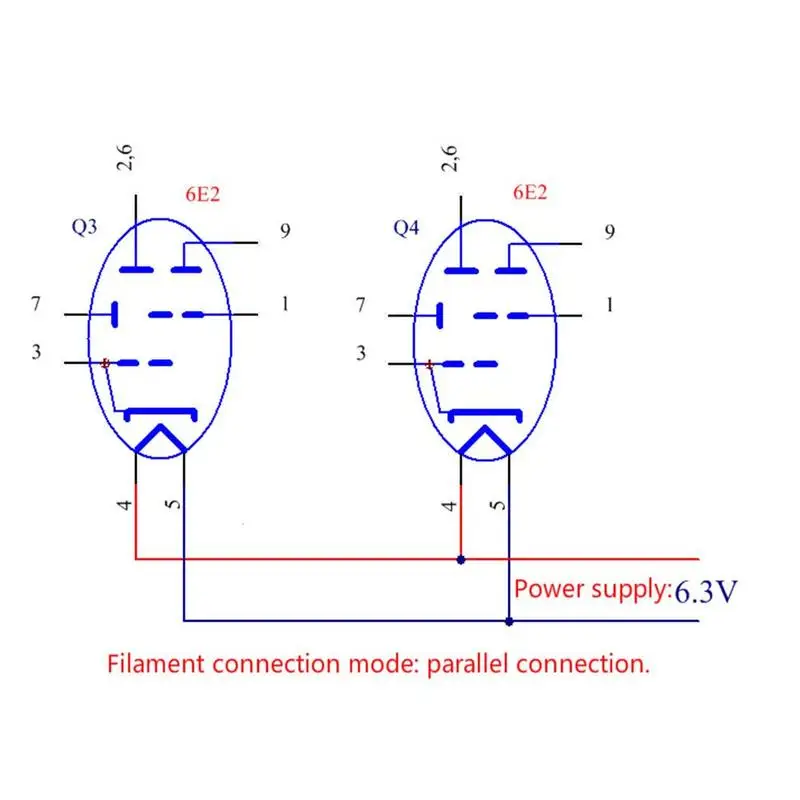 Примечание: два электронных трубок соединены параллельно с 6,3 V источника питания!