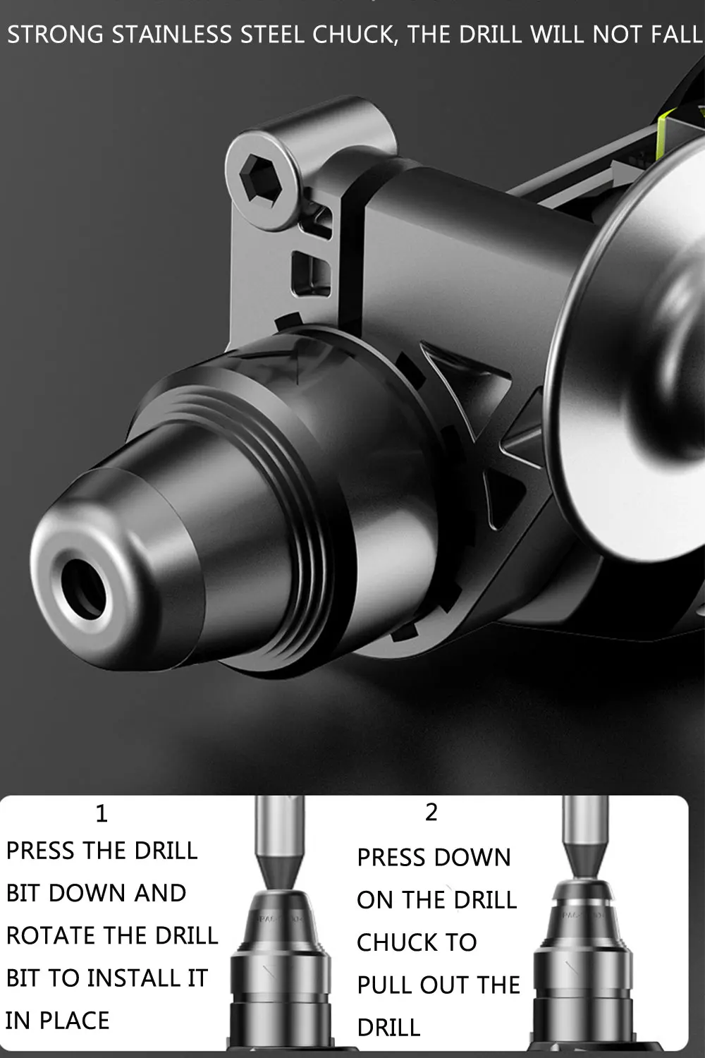 Модернизированный высокопрочный патрон из нержавеющей стали, не боится сильного удара, дрель не упадет.