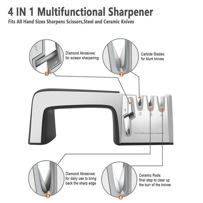 4 в 1 Нержавеющая сталь ножницы инструменты Бриллиантовая заточка ножей