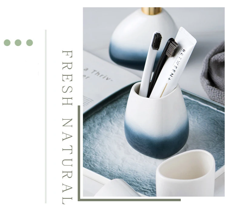 7. Набор аксессуаров для ванной комнаты изготовлен из модной и красочной высококачественной керамики, которая может принести изысканный дизайн в ванную комнату.