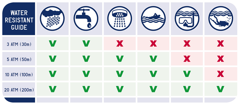Уровень водонепроницаемости: 100 метров водонепроницаемый