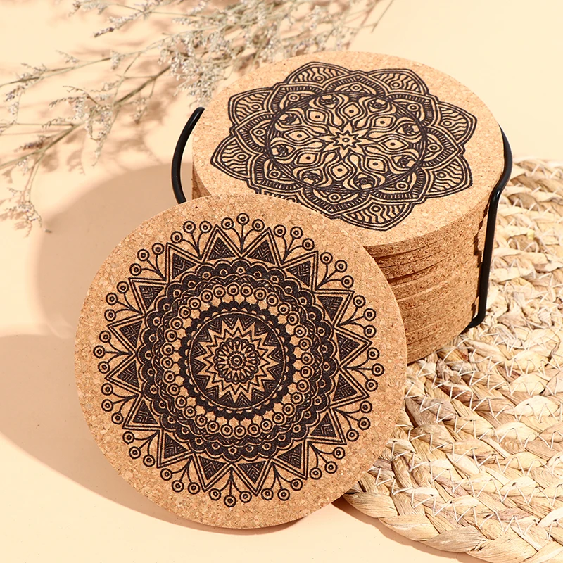 12 шт Мандала дизайн круглой формы деревянные подставки с стойкой круглый пробковые подставки