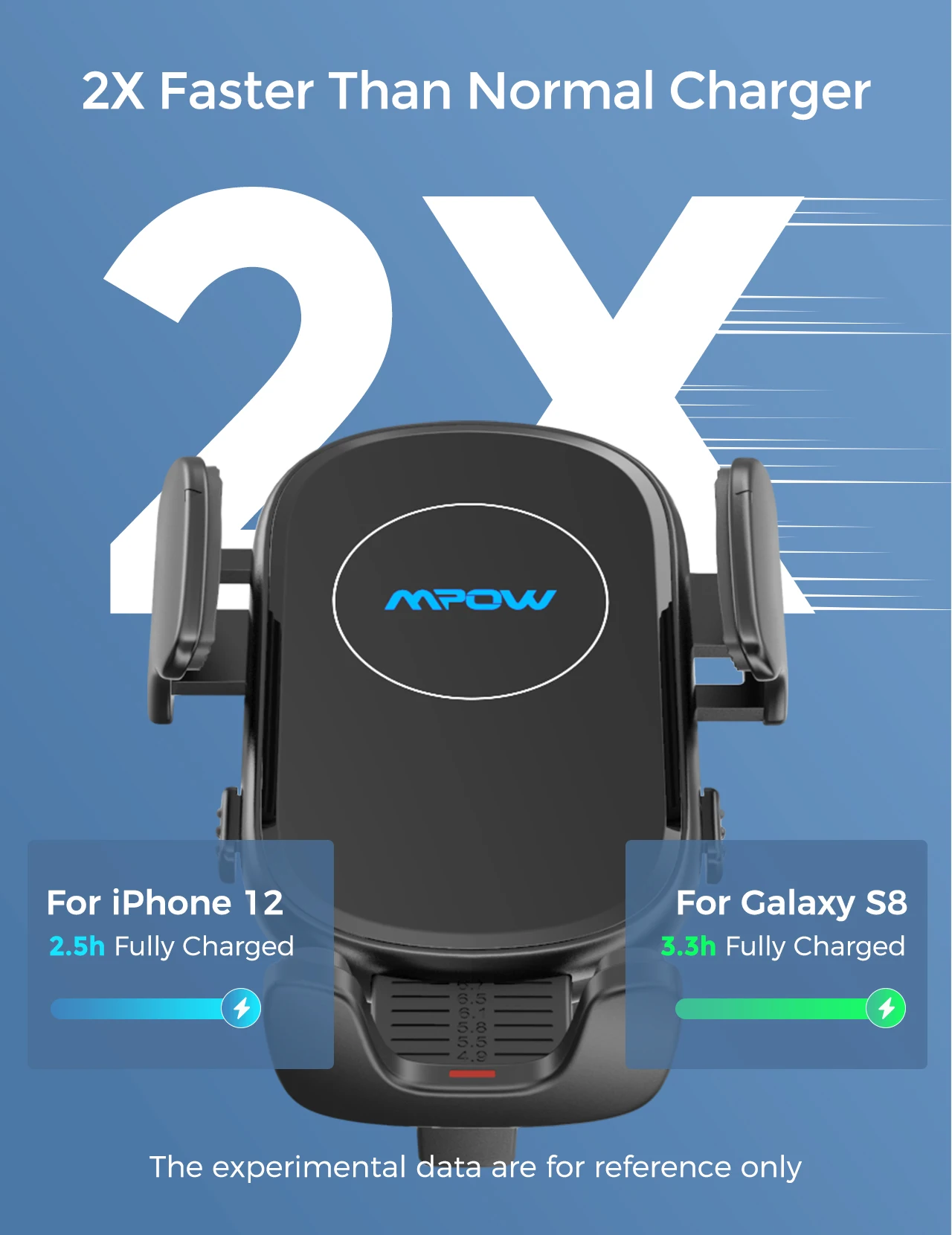 MPOW CA166 беспроводное Qi автомобильное зарядное устройство с автоматическим зажимом автомобильное беспроводное зарядное устройство с вентиляционным отверстием автомобильное крепление для телефона Совместимо с iPhone Galaxy