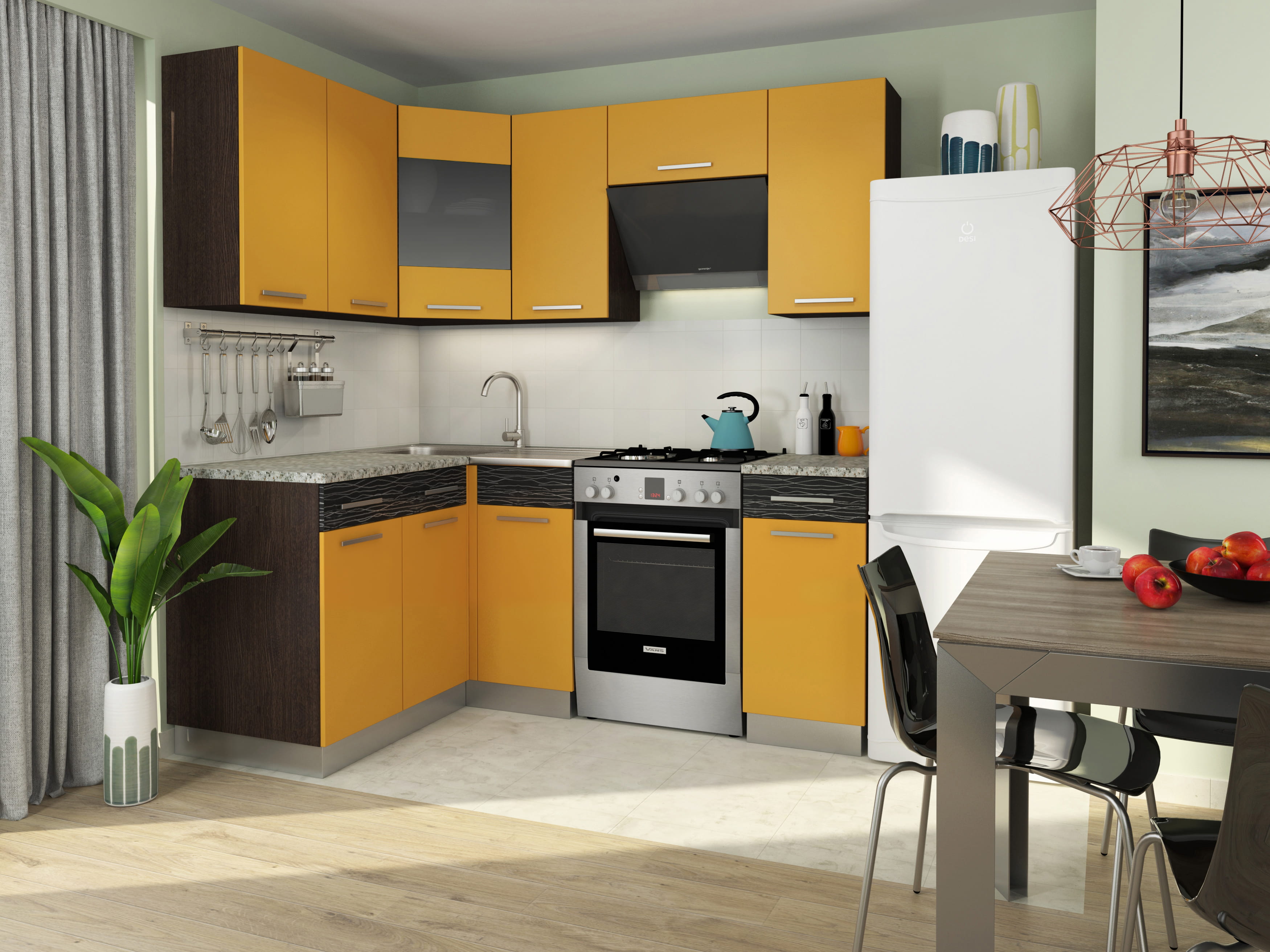 Высота рабочих столов: 850 мм. Глубина рабочих столов: 600 мм. Высота навесных шкафов: 600 мм. Глубина навесных шкафов: 300 мм. Длина по левой стене: 1400 мм. Длина по правой стене: 2000 мм.Особенности гарнитура: